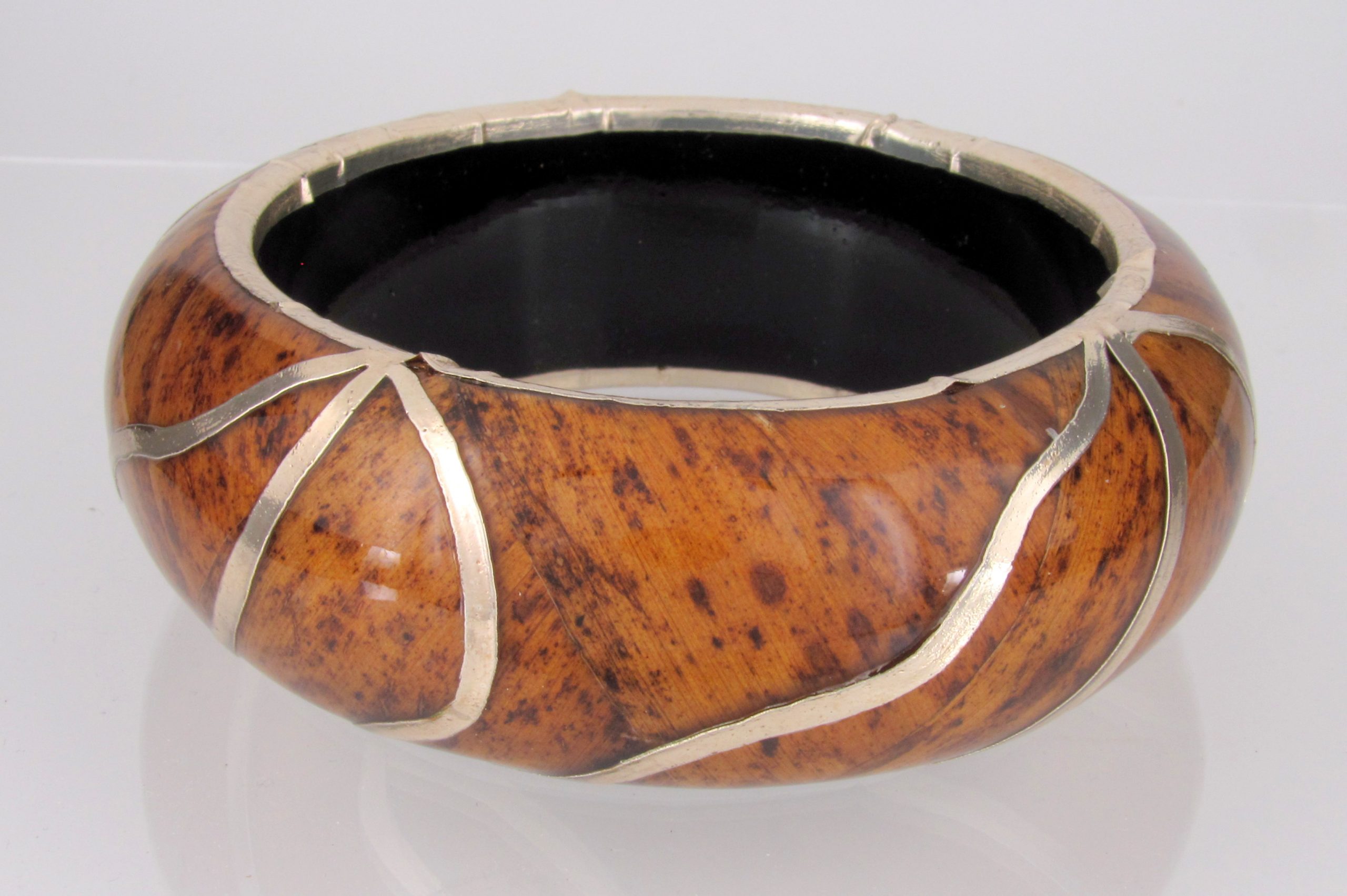 Wood bangle with metal accents