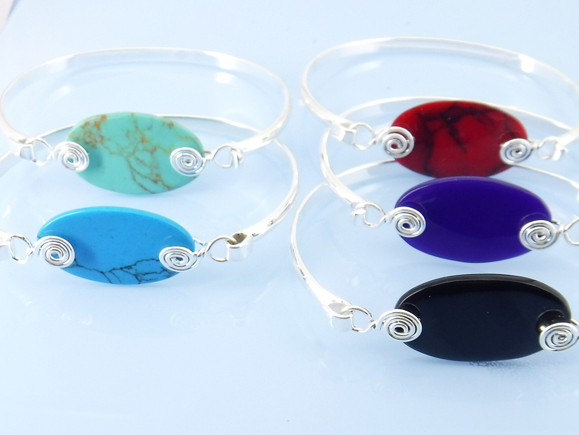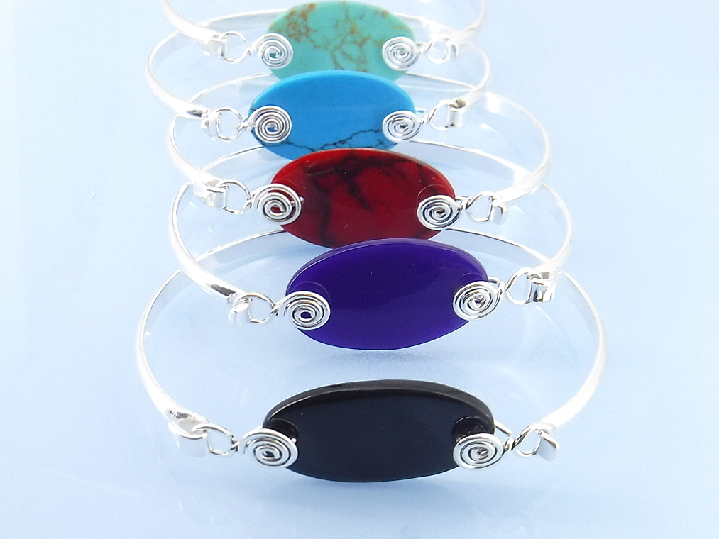 Oval stone bangle bracelet