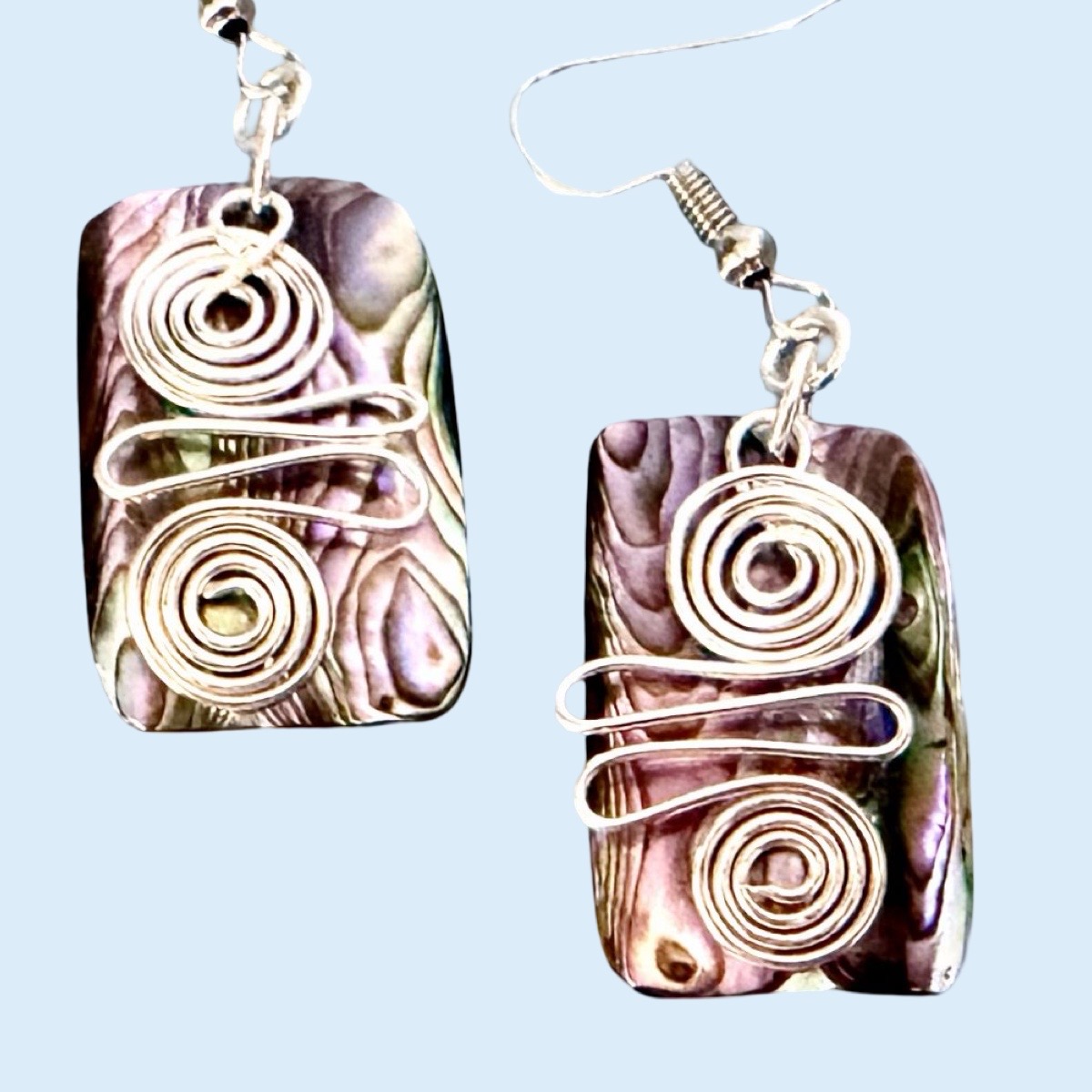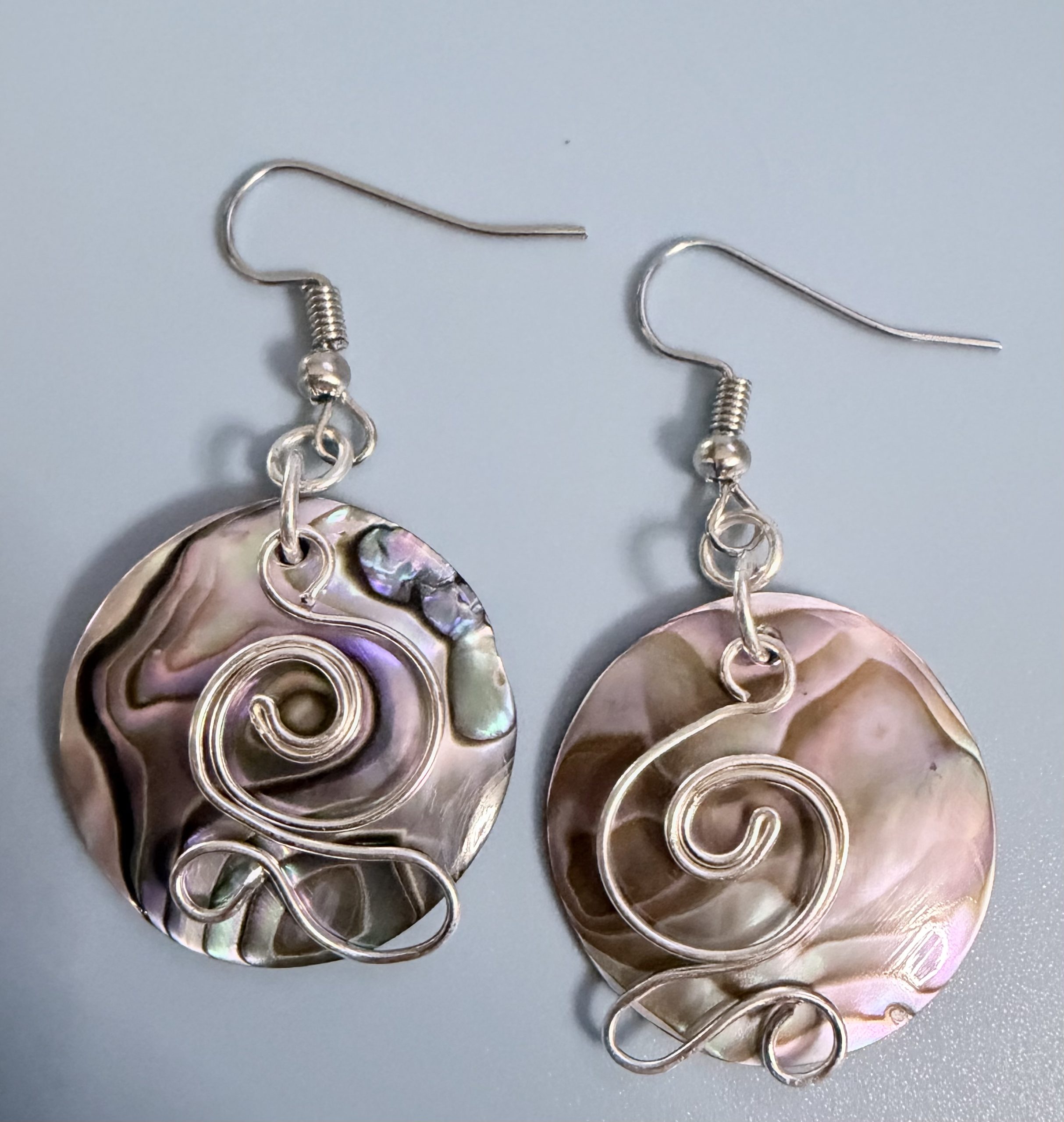 Wire wrapped shell earrings handmade in Mexico in assorted colors and shapes