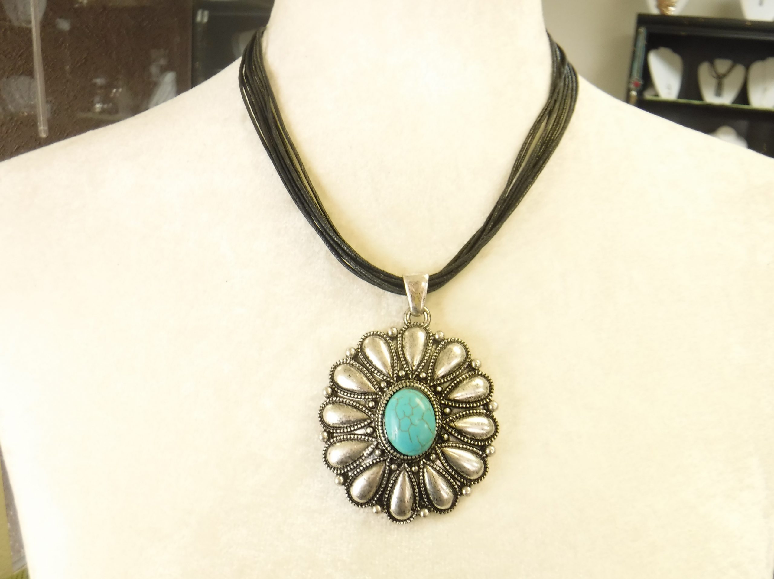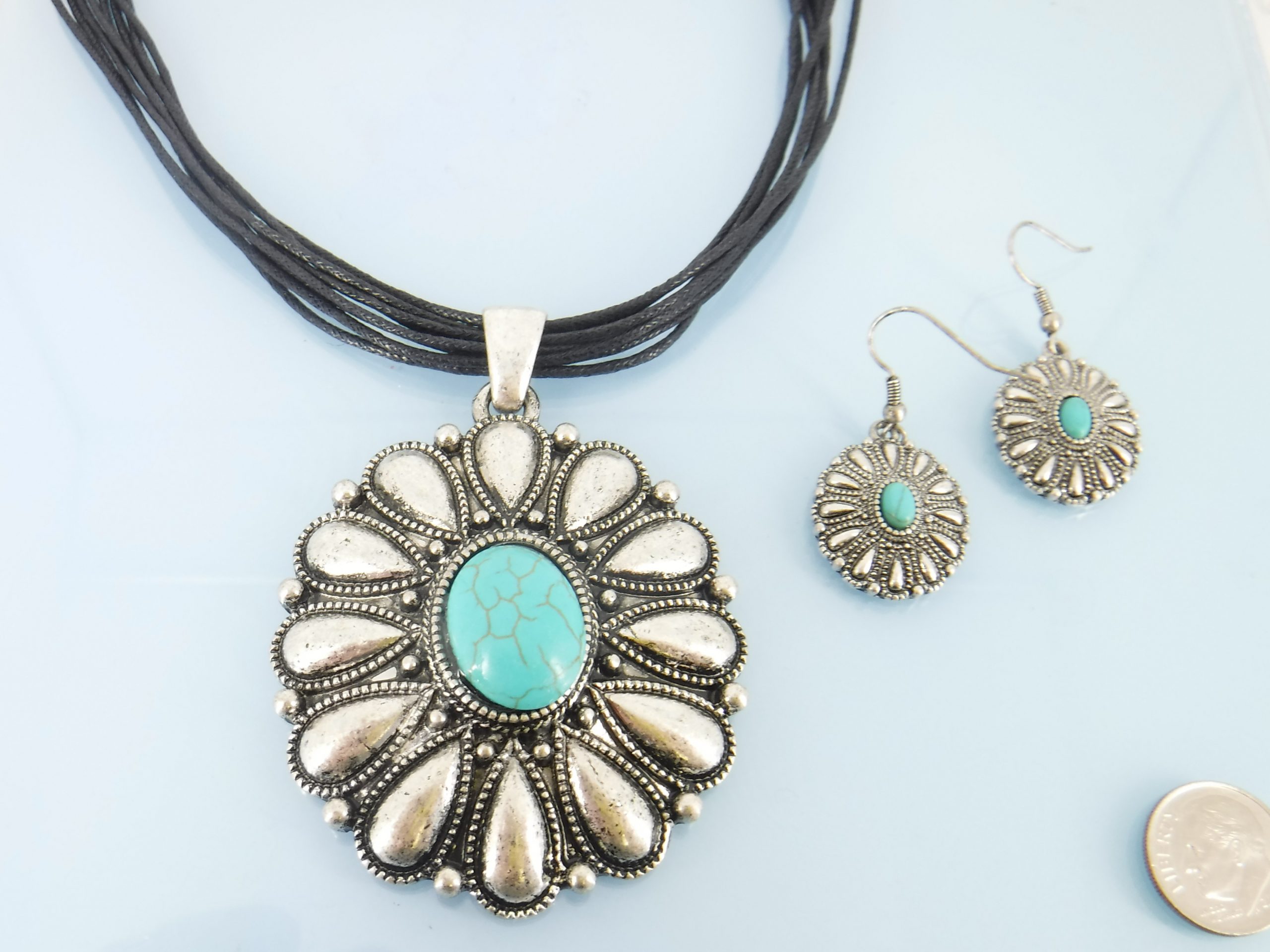 Western Style 18+3″ necklace set – Oval with turquoise accent