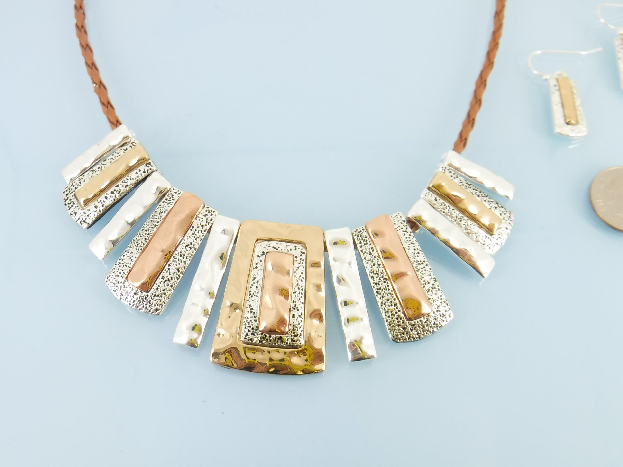 Mixed metal bib necklace set
