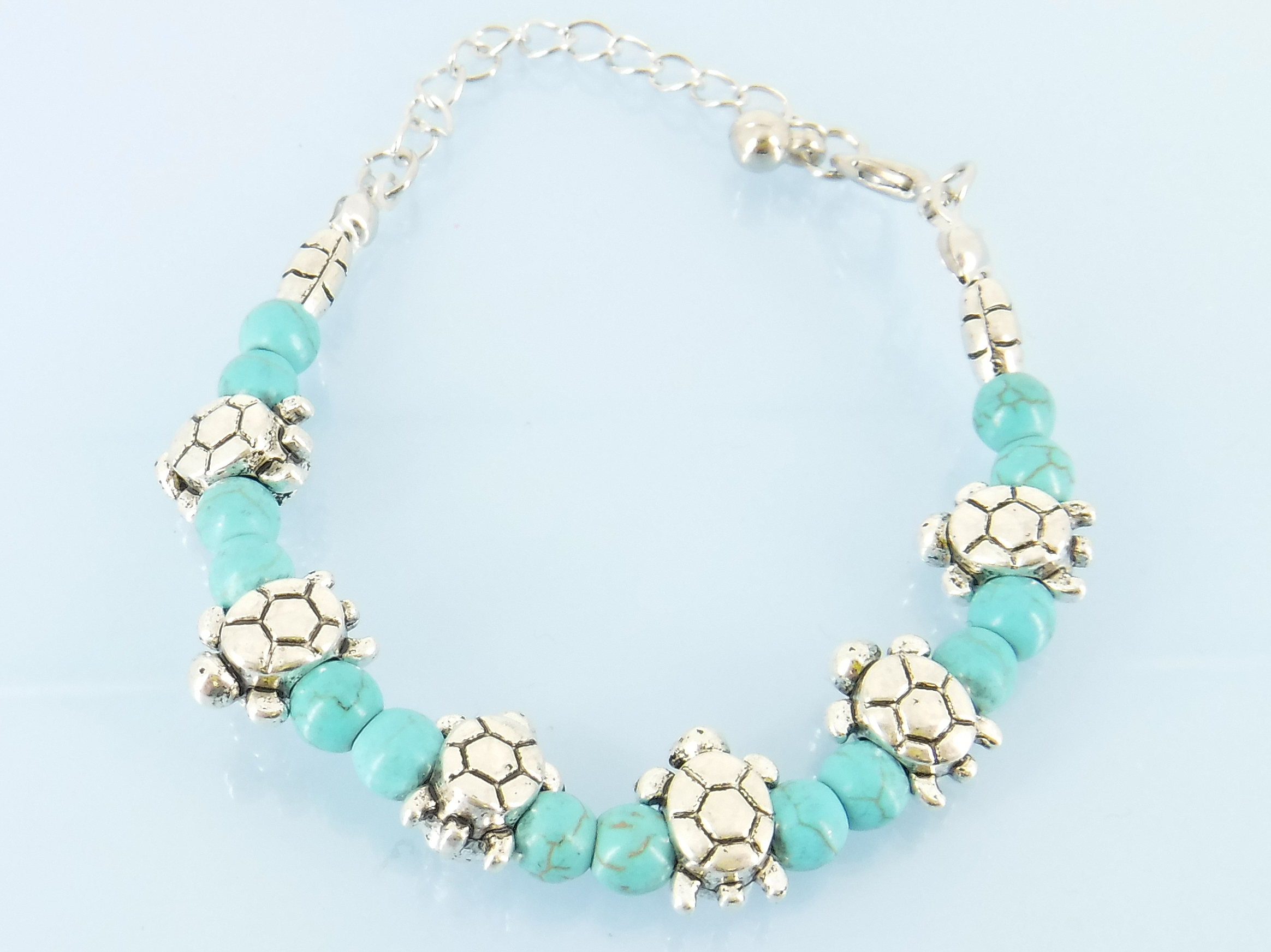Silver turtles and turquoise bead bracelet