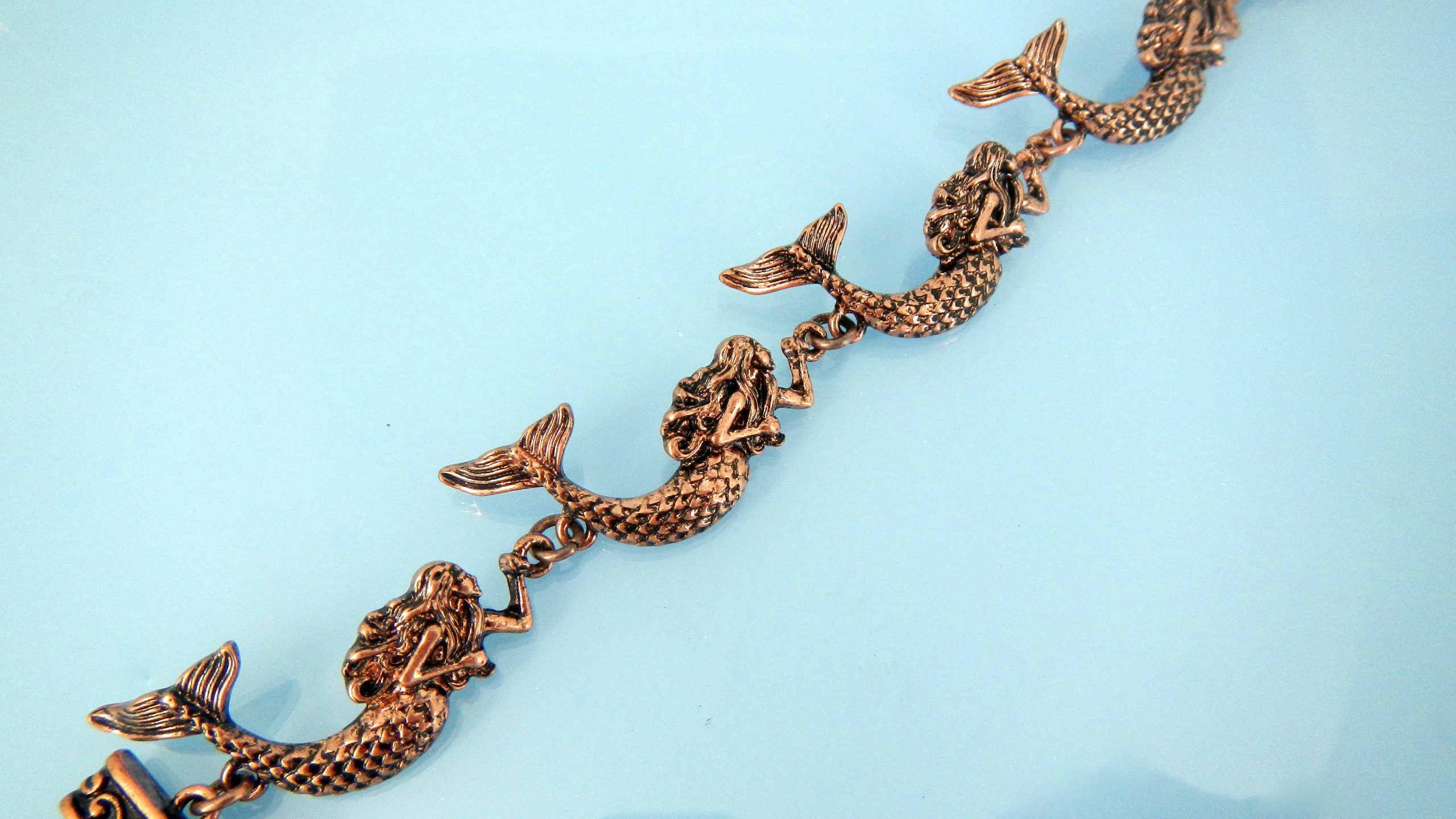 Copper mermaid link bracelet