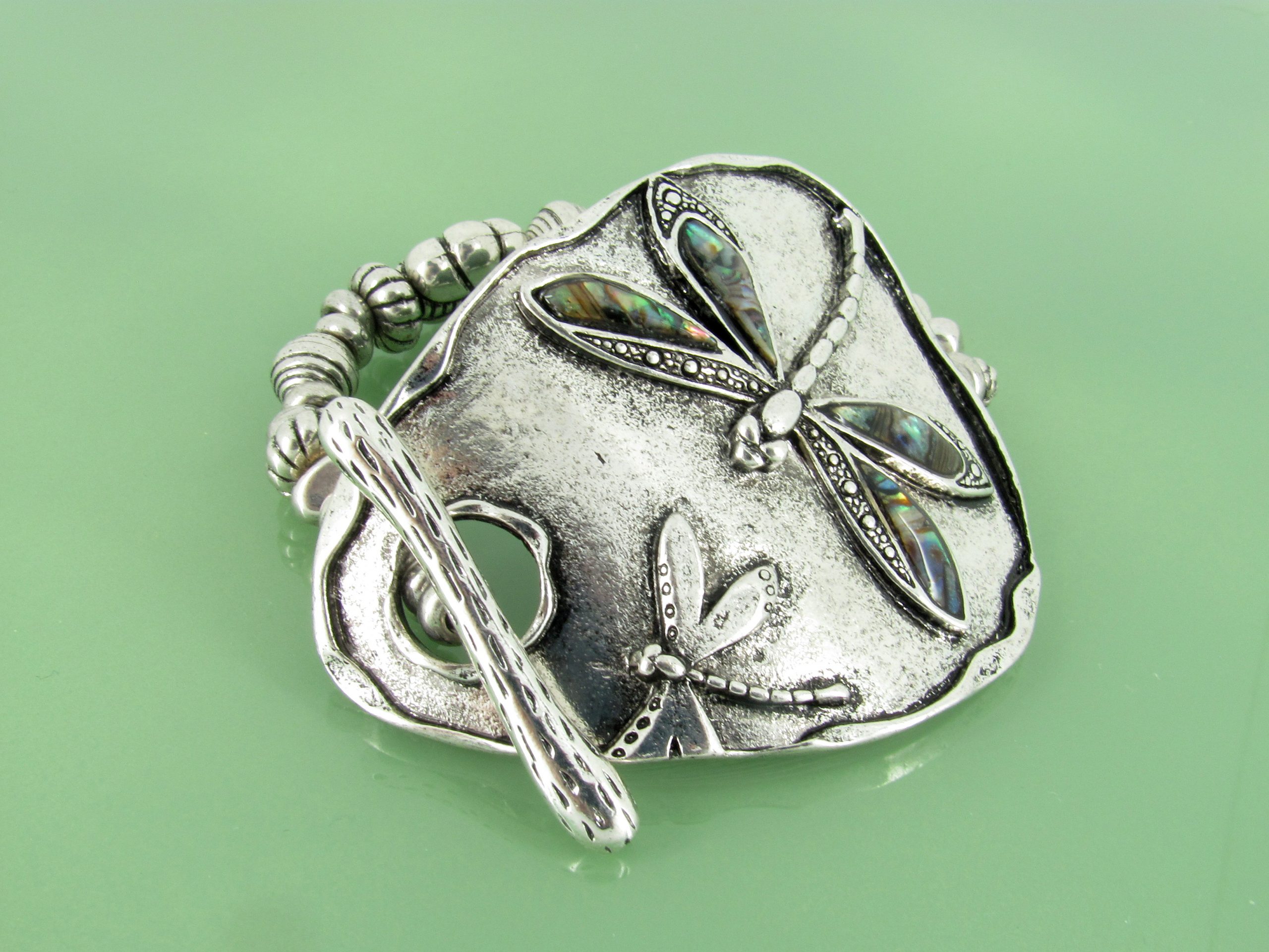 Large dragonfly medallion stretch bracelet