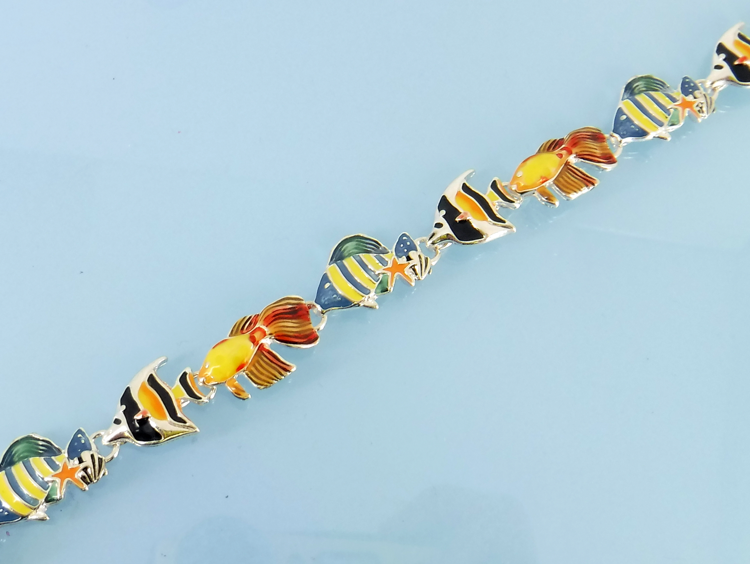 Multi colored fish link bracelet