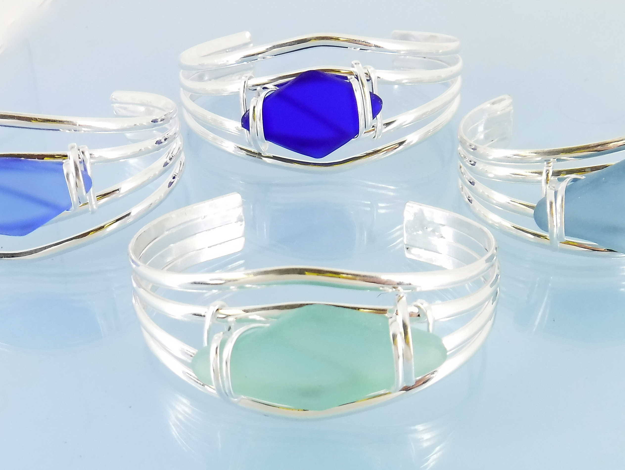 Simple sea glass cuff bracelet (Update 6-22 limited colors in stock)