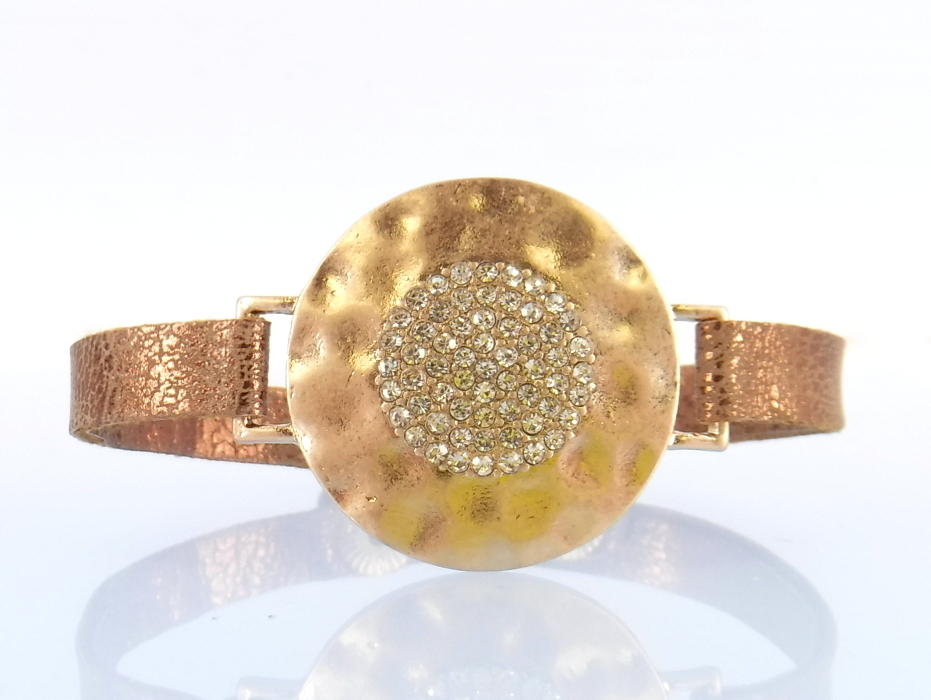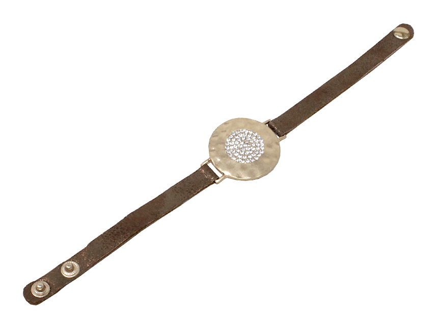 Brown faux leather with gold rhinestone disc