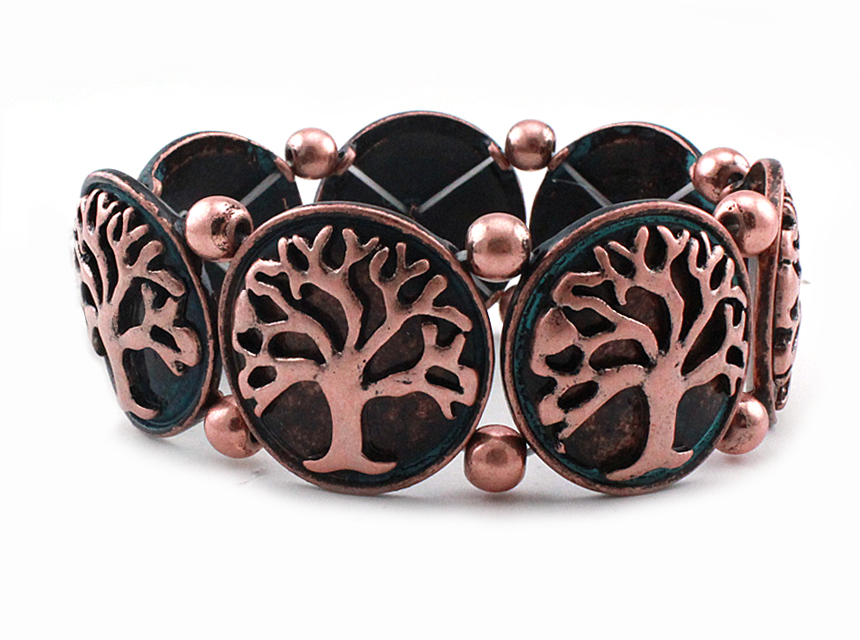 Copper and patina tree of life stretch bracelet