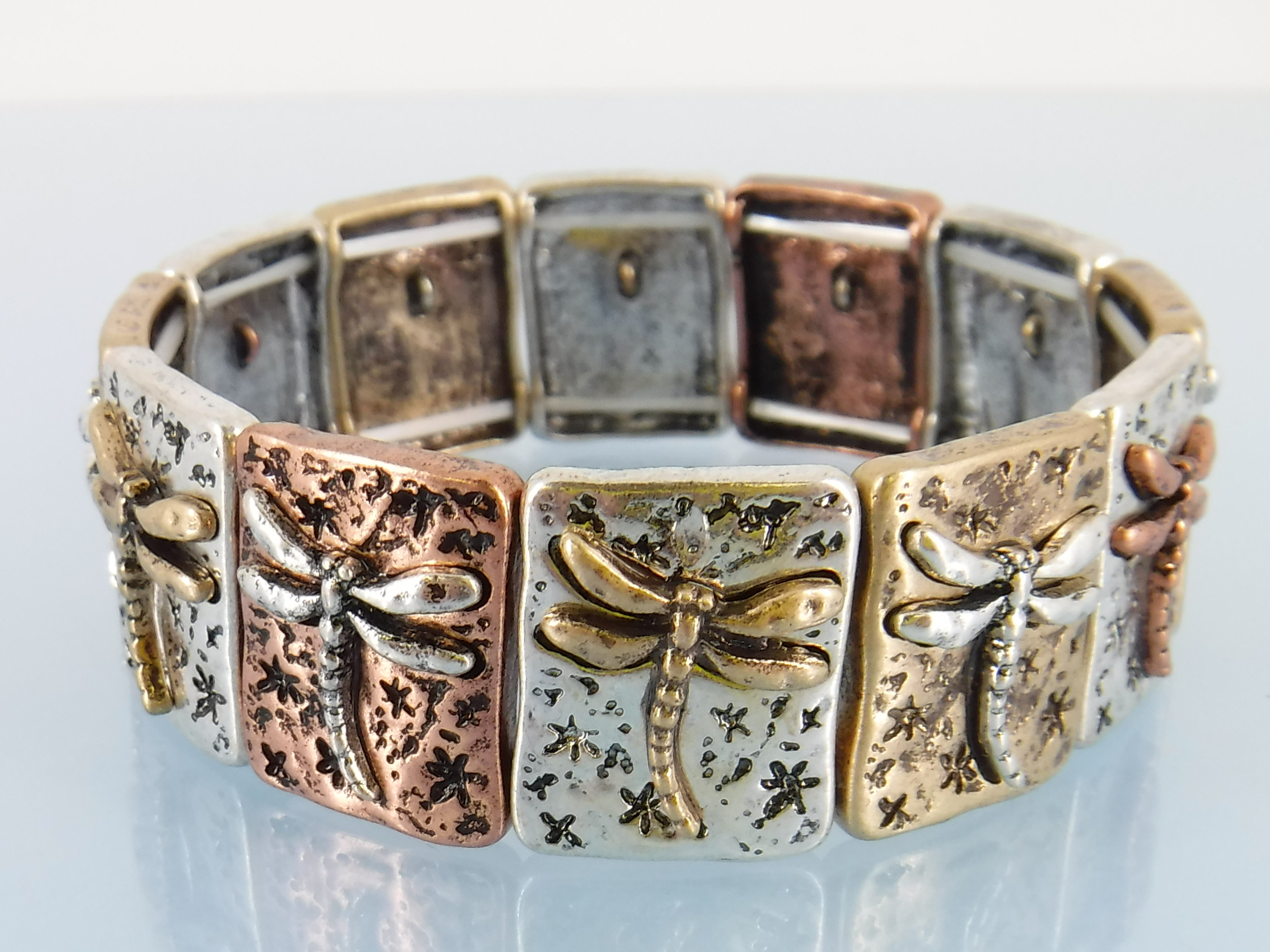 Mutli color stretch bracelet with dragonflies