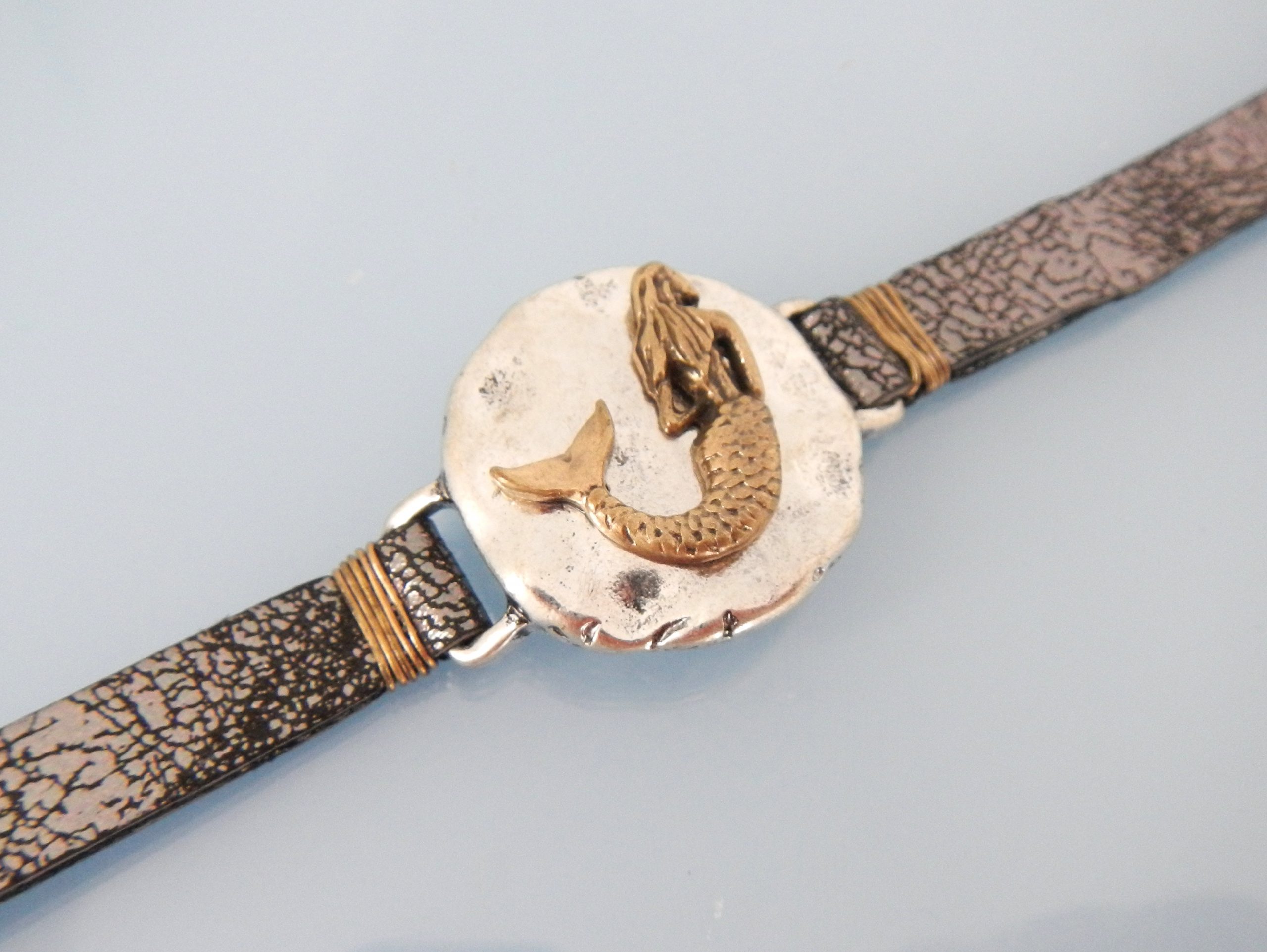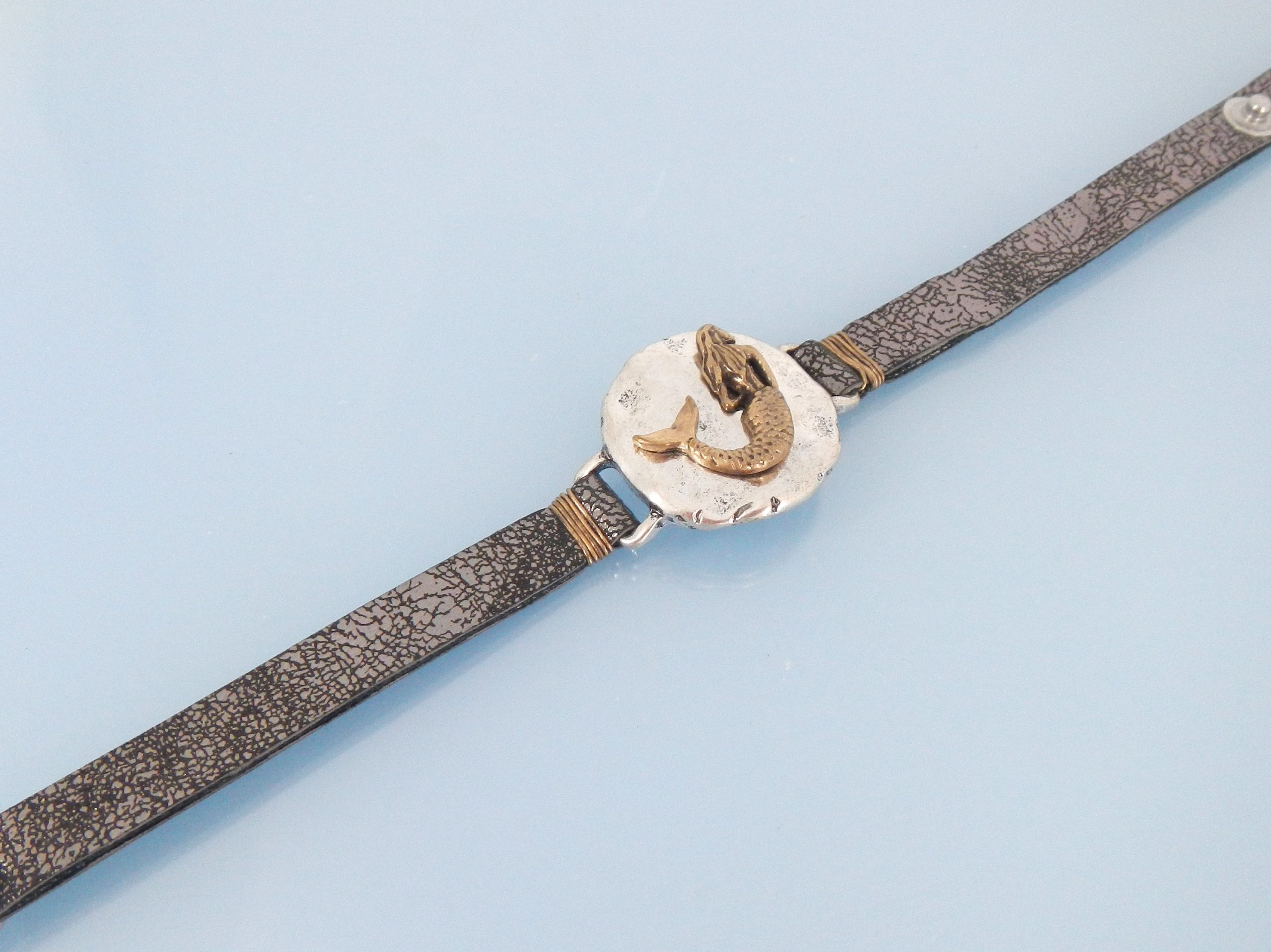 Leather bracelet wih mermaid medallion