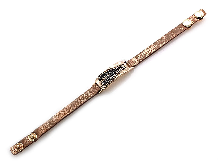 Leather bracelet with heart and stones
