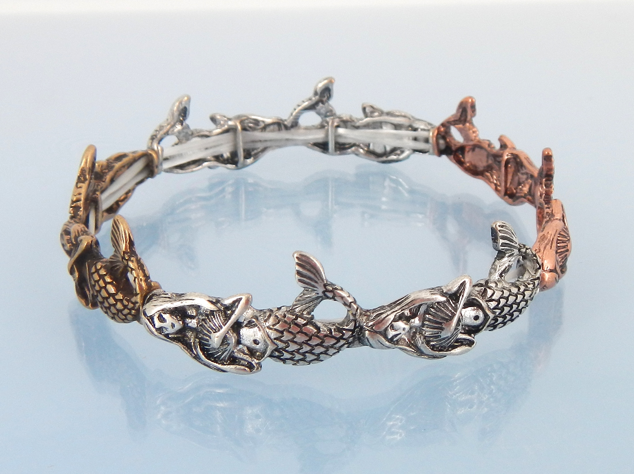 Stretch mermaid bracelet in mixed metals