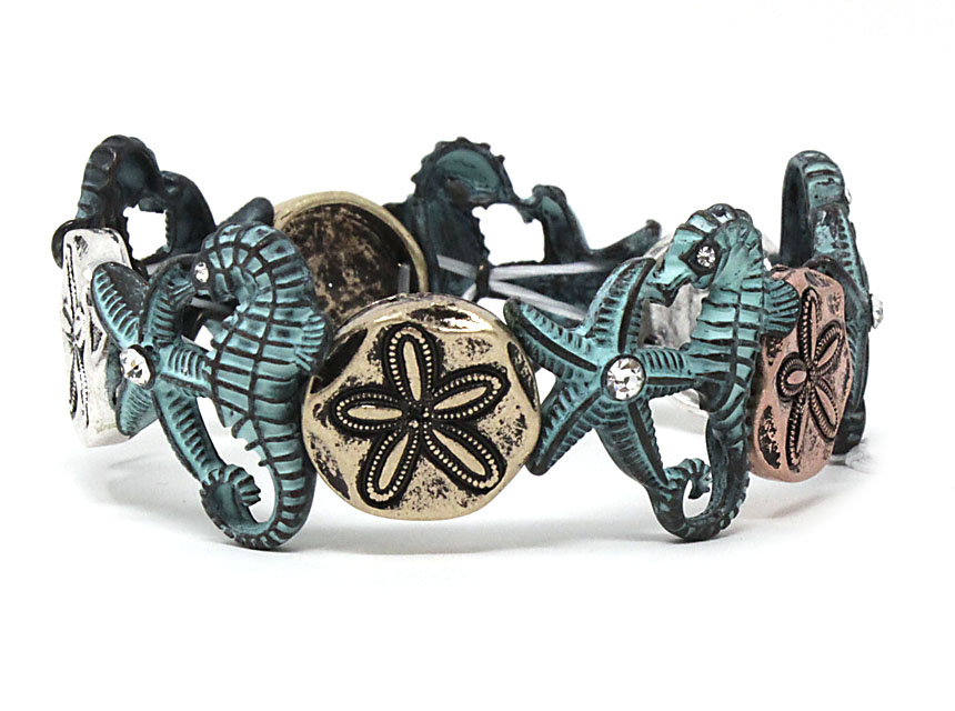 Mixed sealife patina stretch bracelet