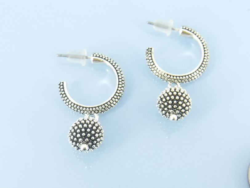 Granulated hoop earrings with ball