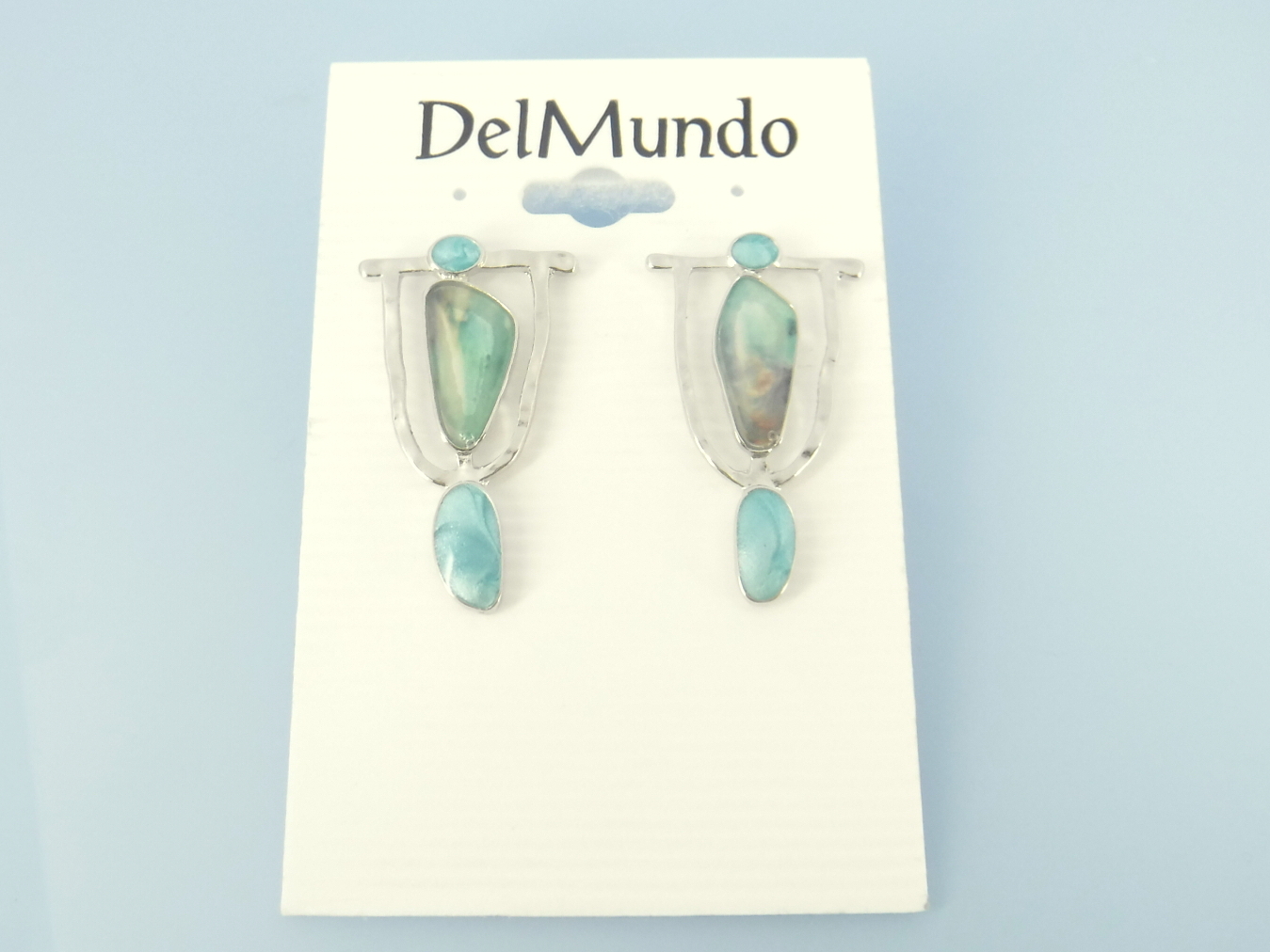 Resin and zinc alloy post earrings in blues