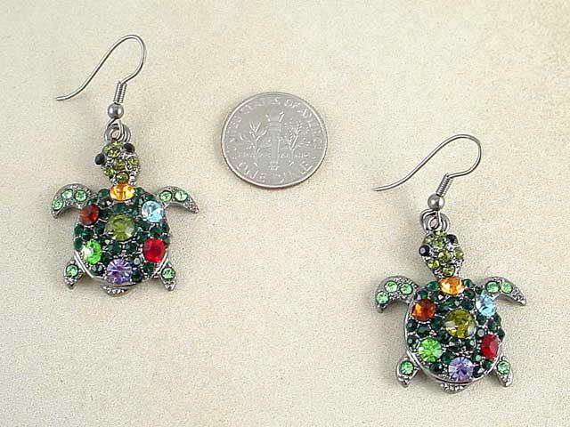 Earrings dangling turtle rhinestone