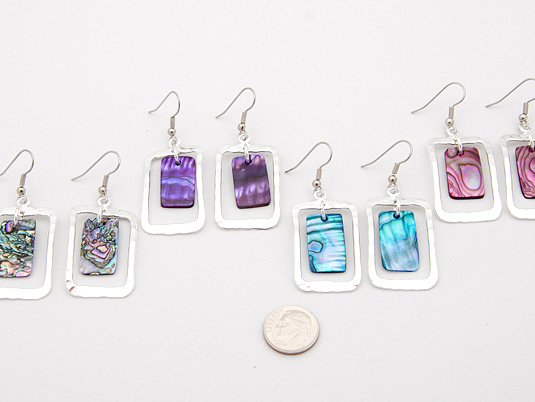 Hammered rectangle hoop with purple shell necklace