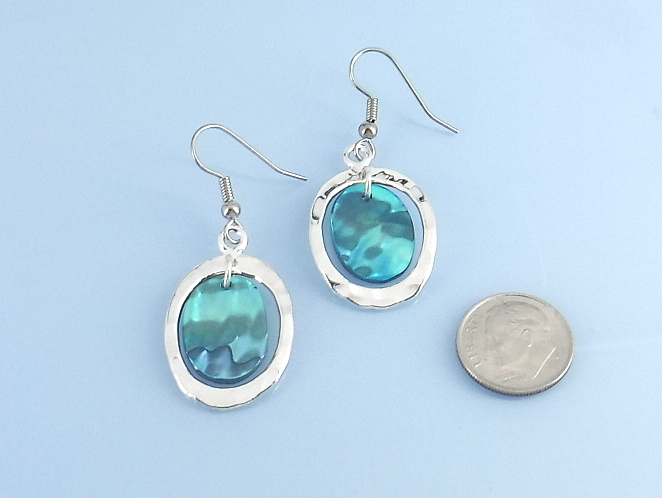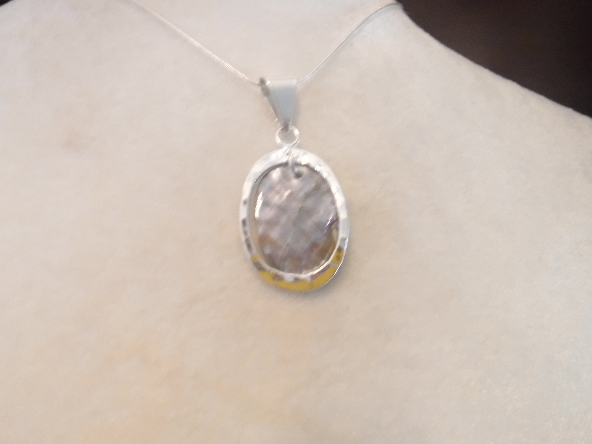 Oval shell necklace with hammered accent in blue – silver plate chain