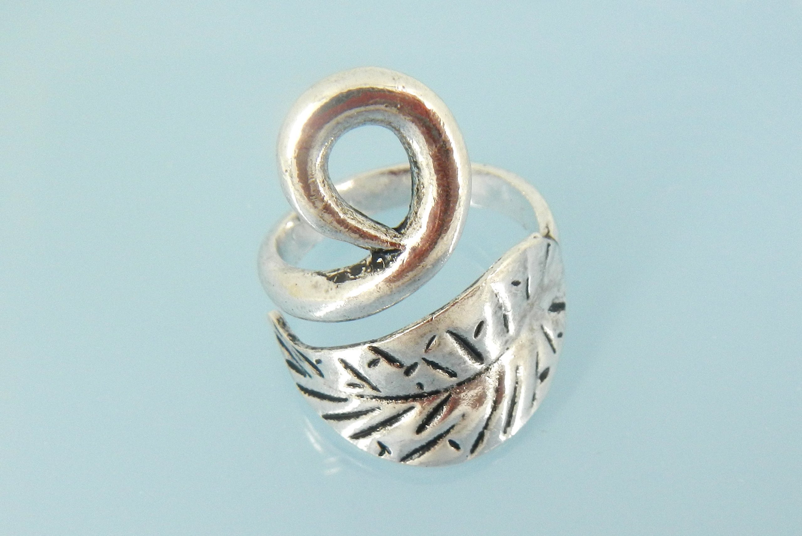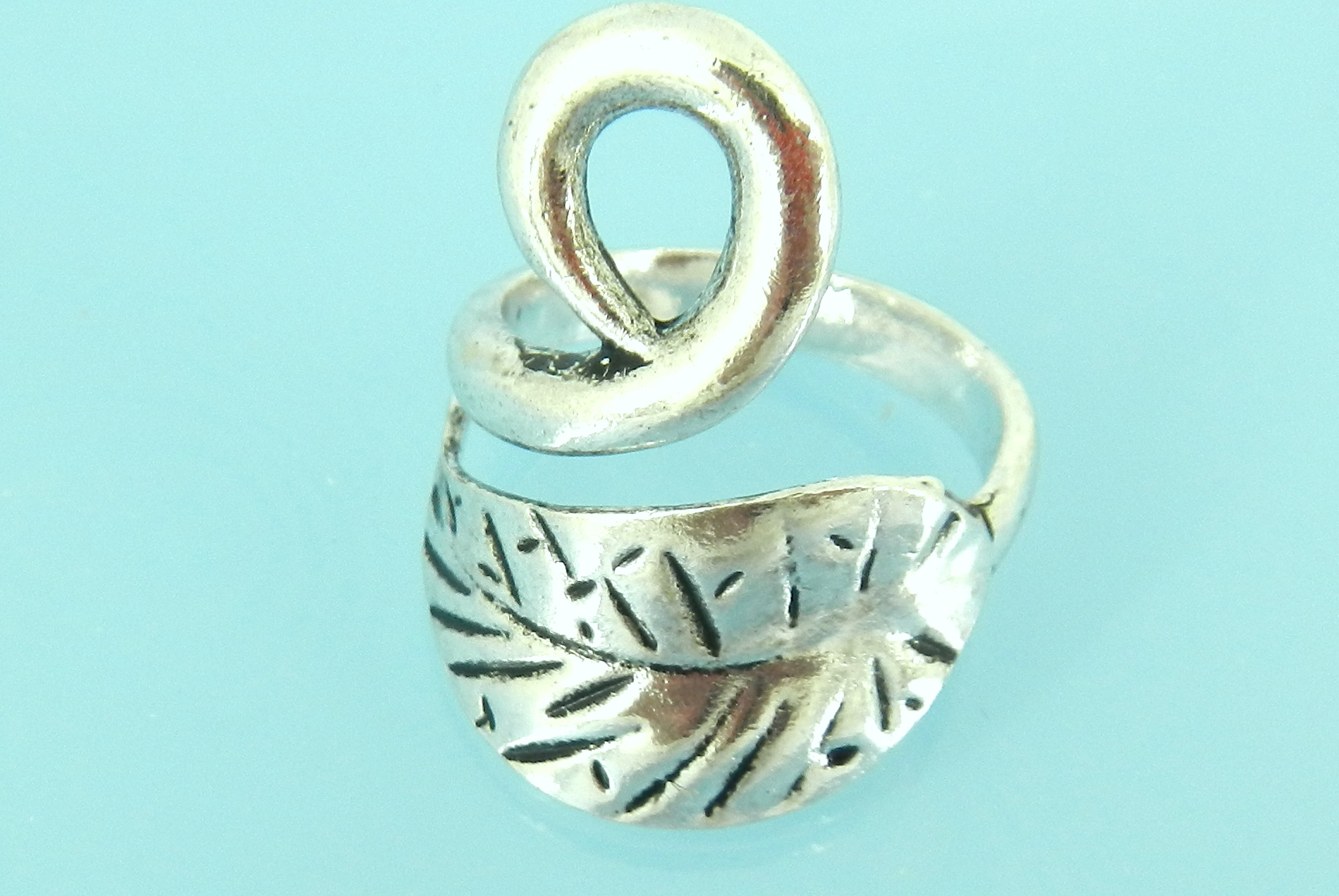 Wrap around leaf ring in silver