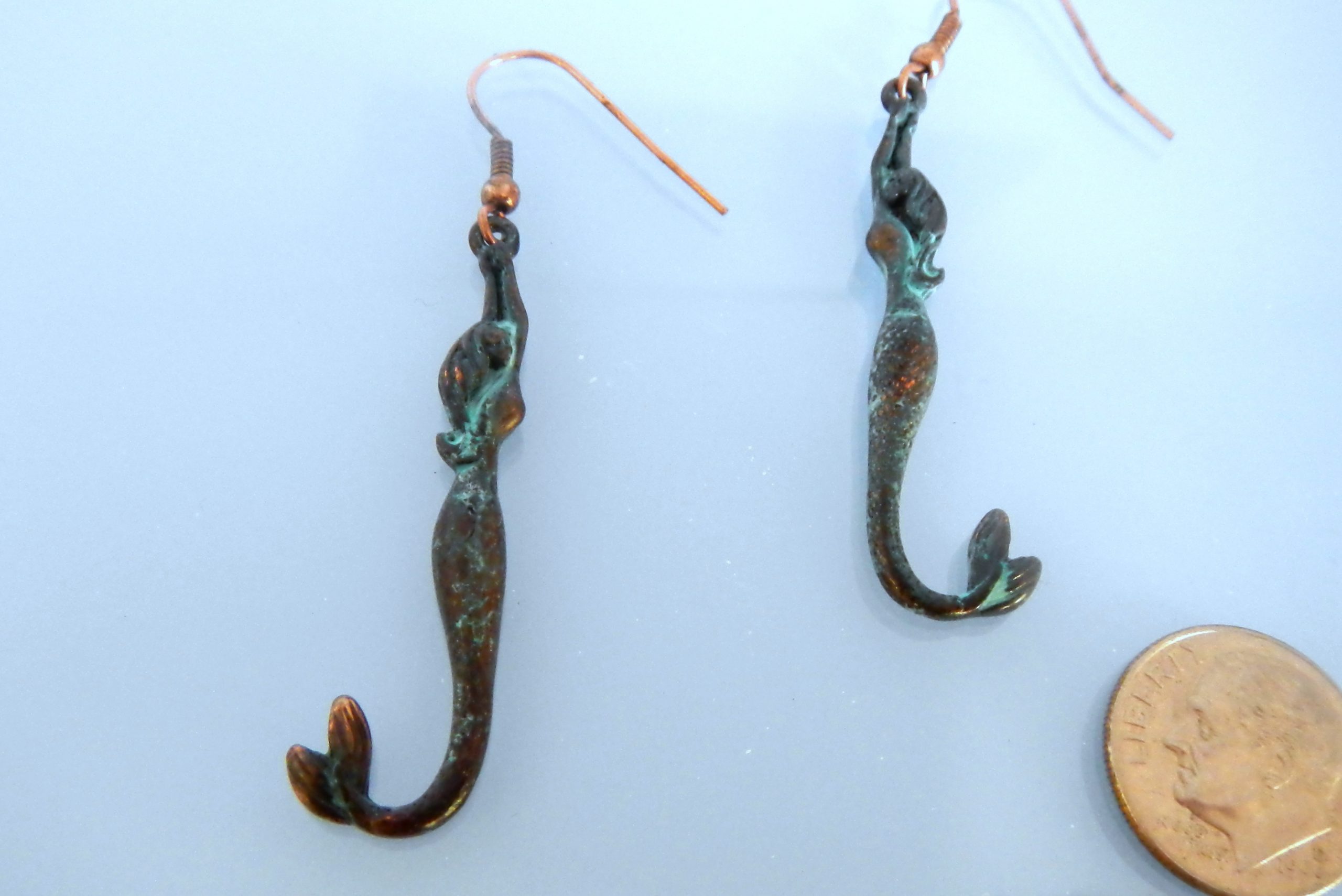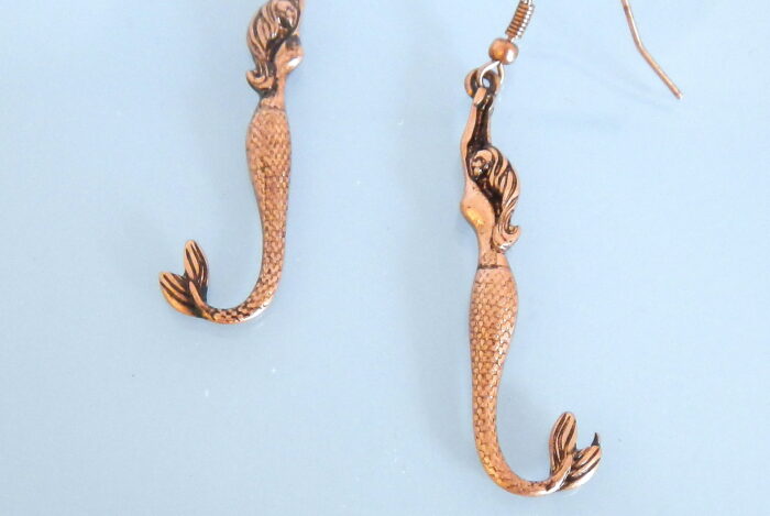 Copper mermaid earrings