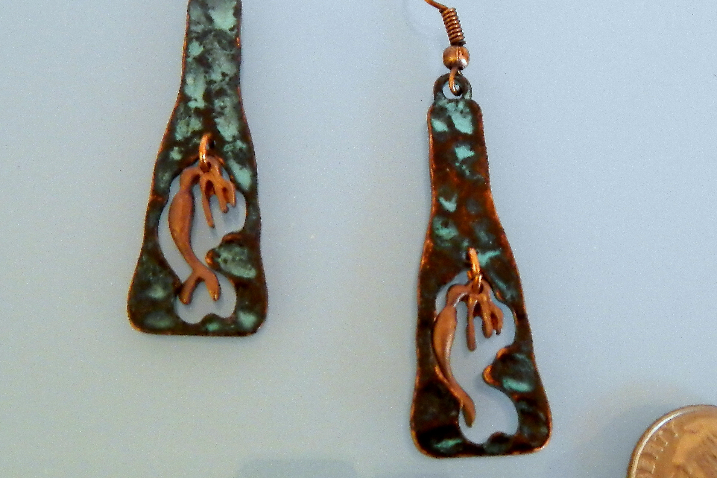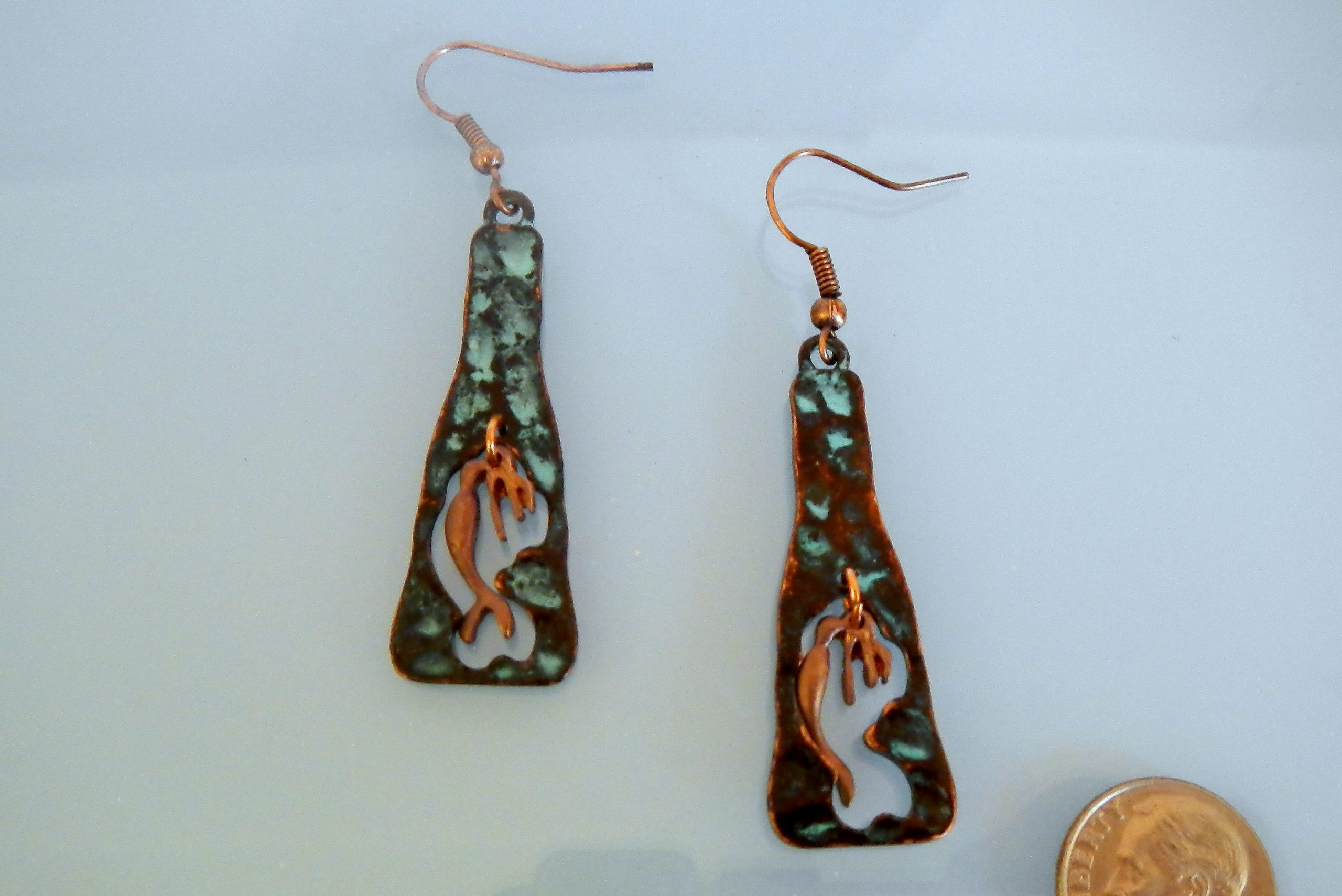 Patina and copper mermaid earrings