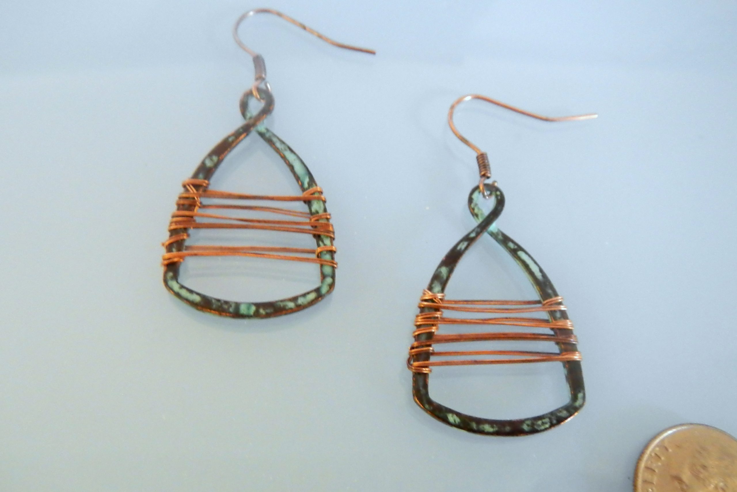 Copper wire wrapped patina earrings