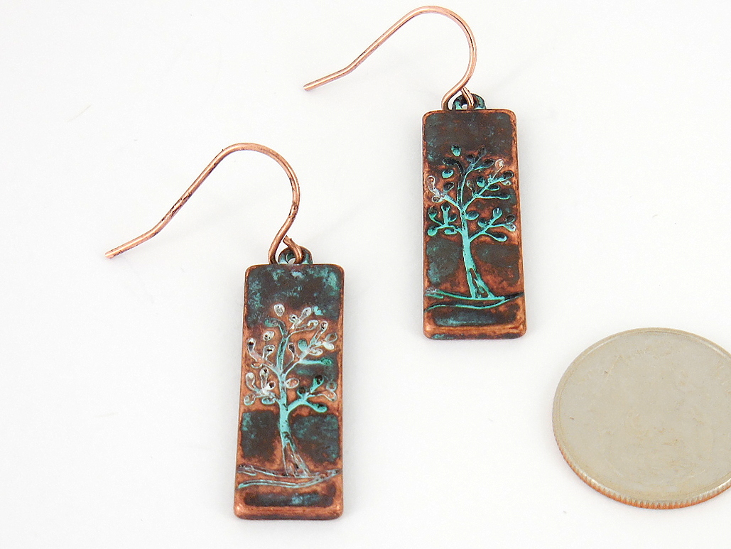Patina rectangle tree earring