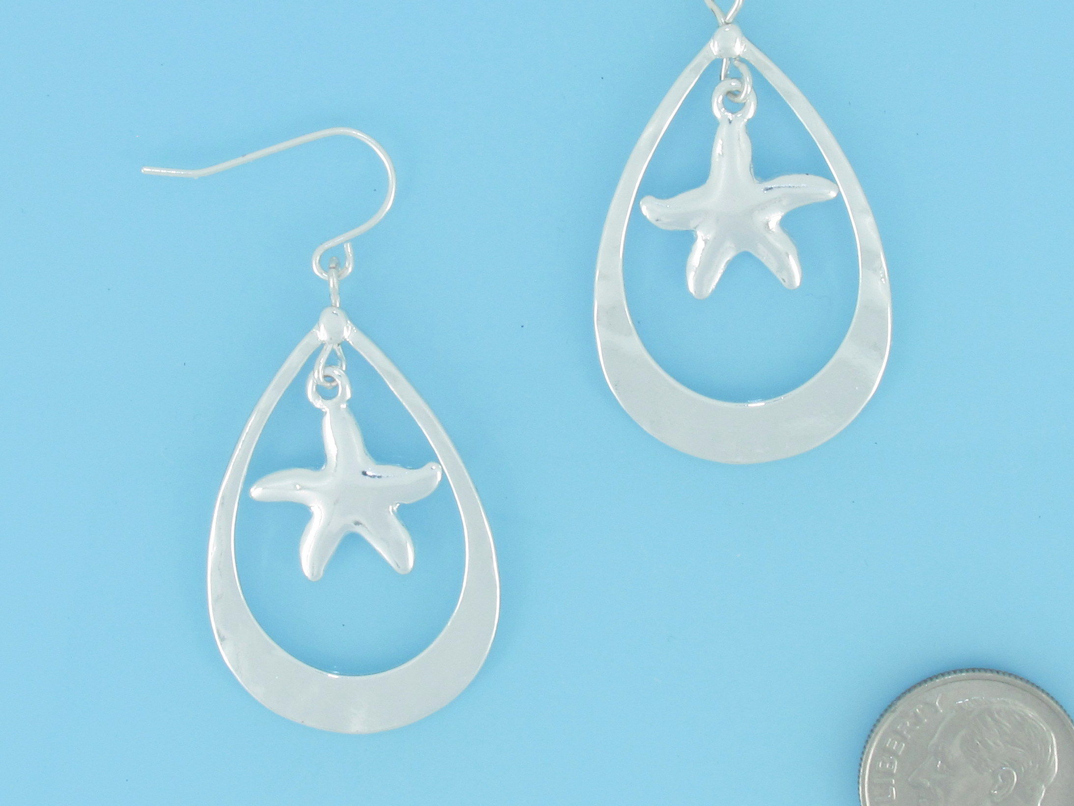 Teardrop hoop with dangling starfish earring