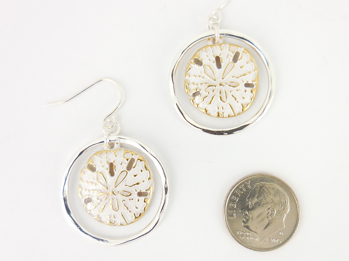 Sand dollar in gold and white in hoop earring