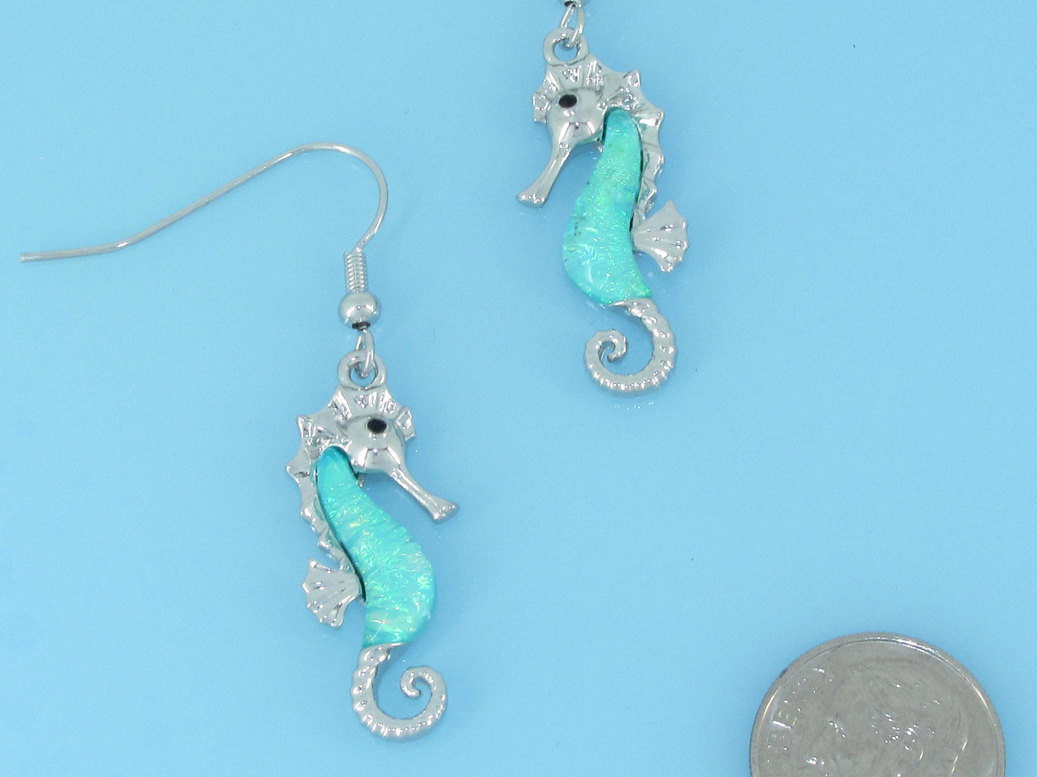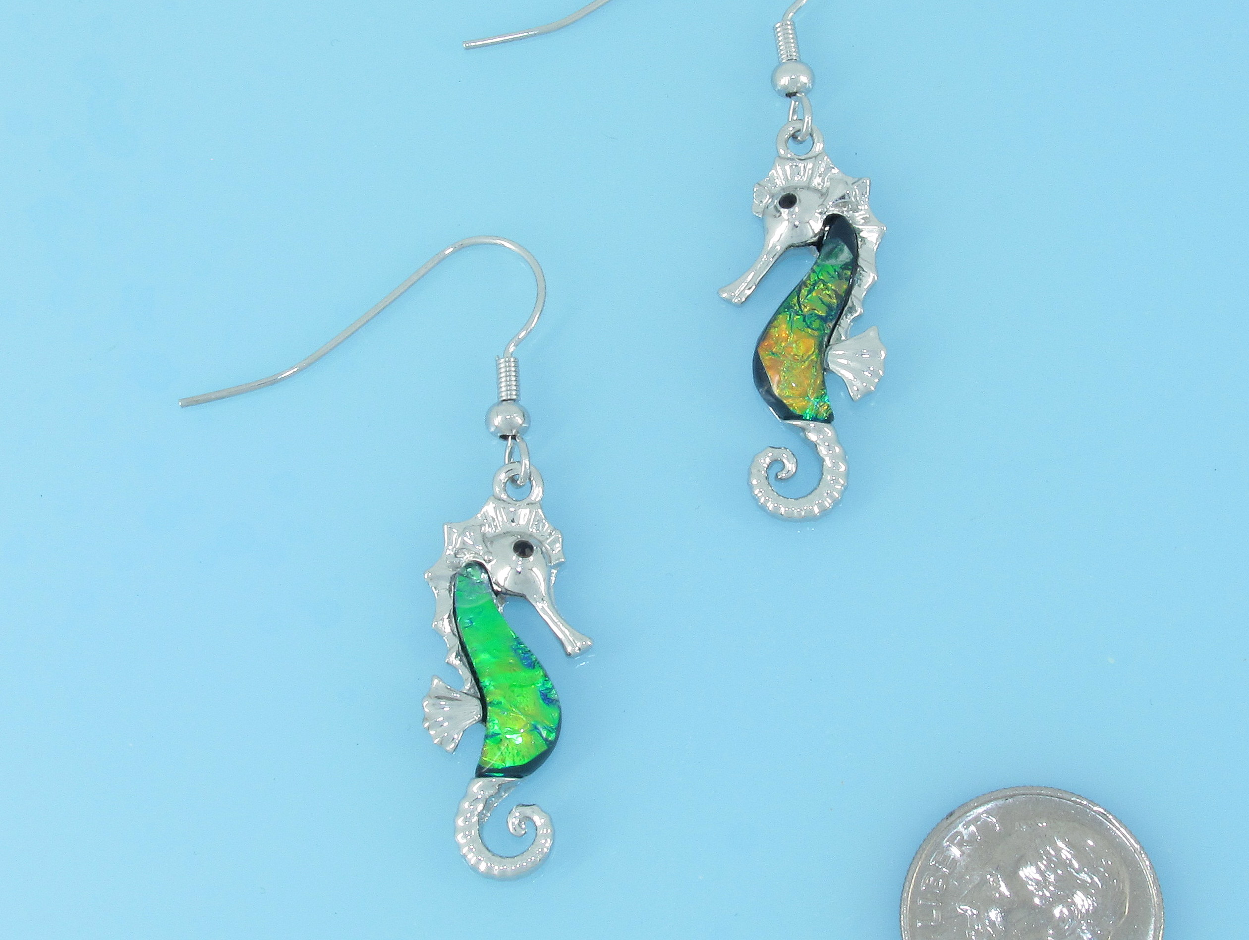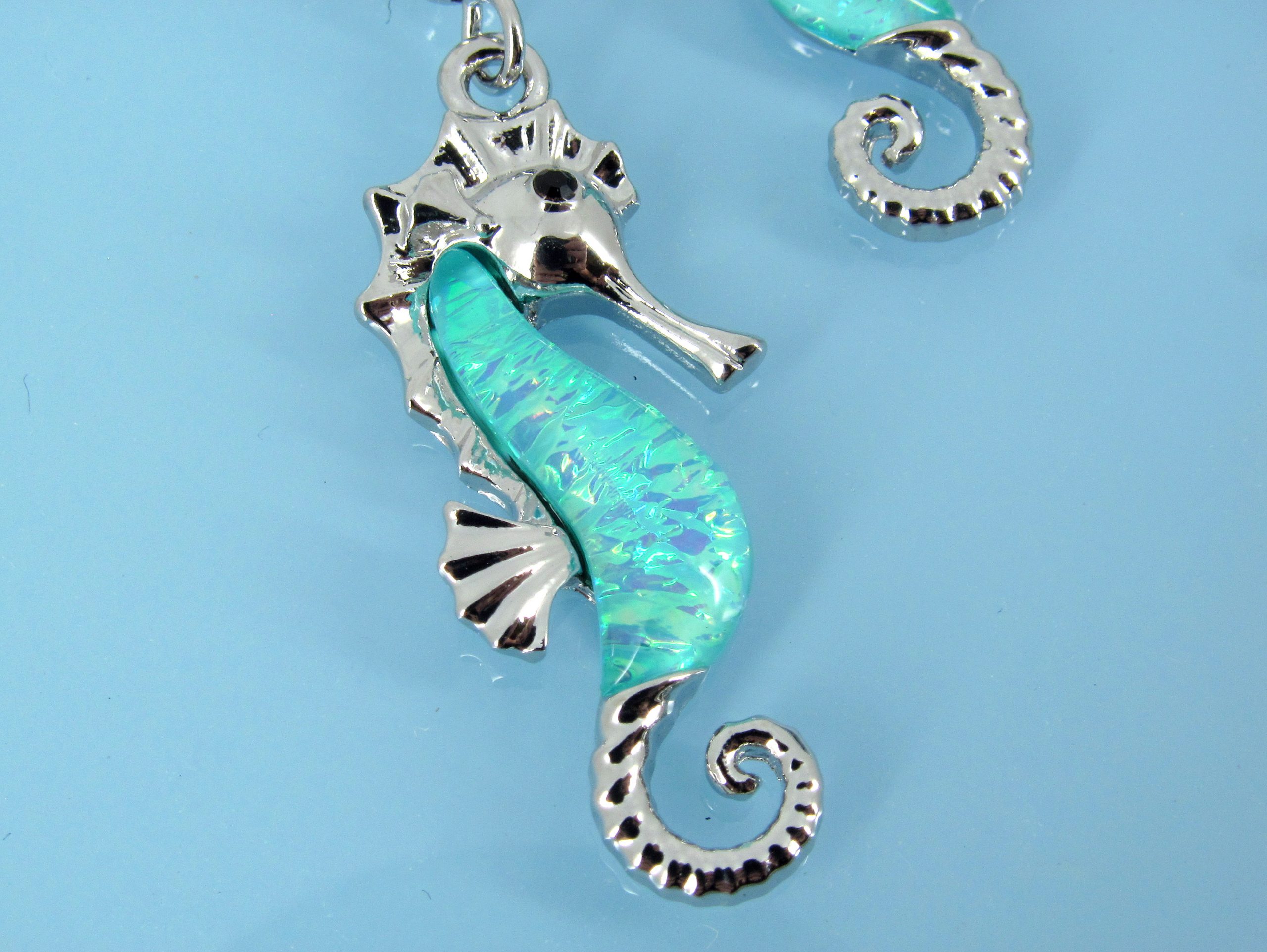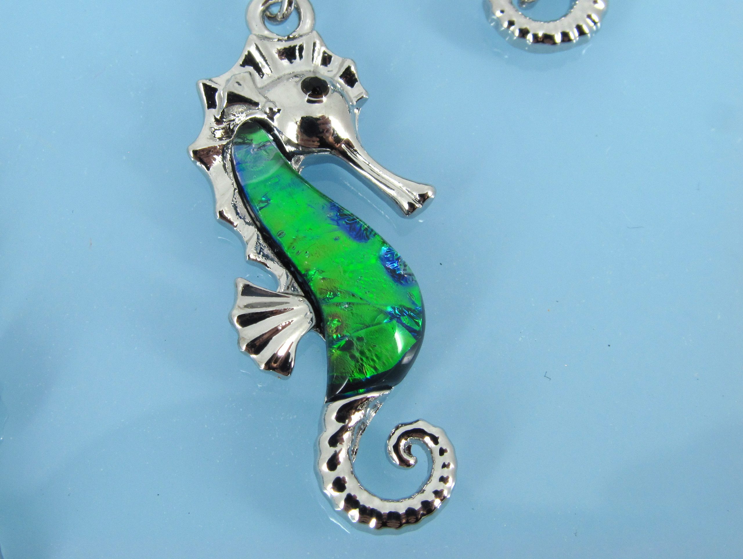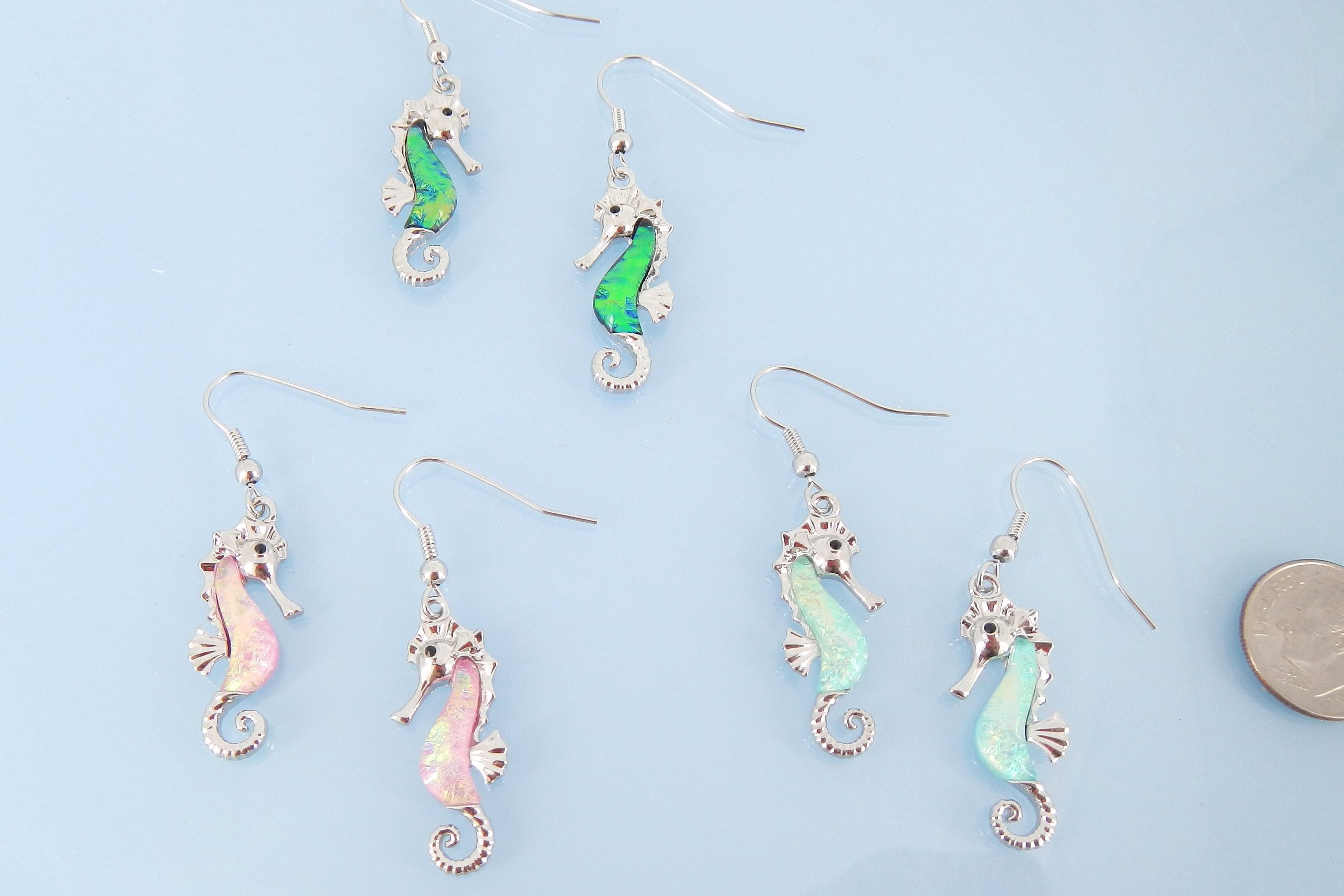 Sea horse earring in pink, blue and green