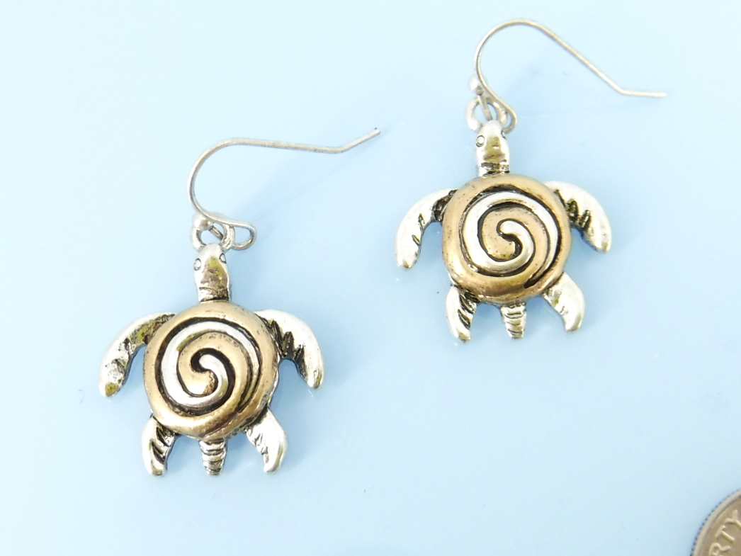 Silver and gold turtle earrings