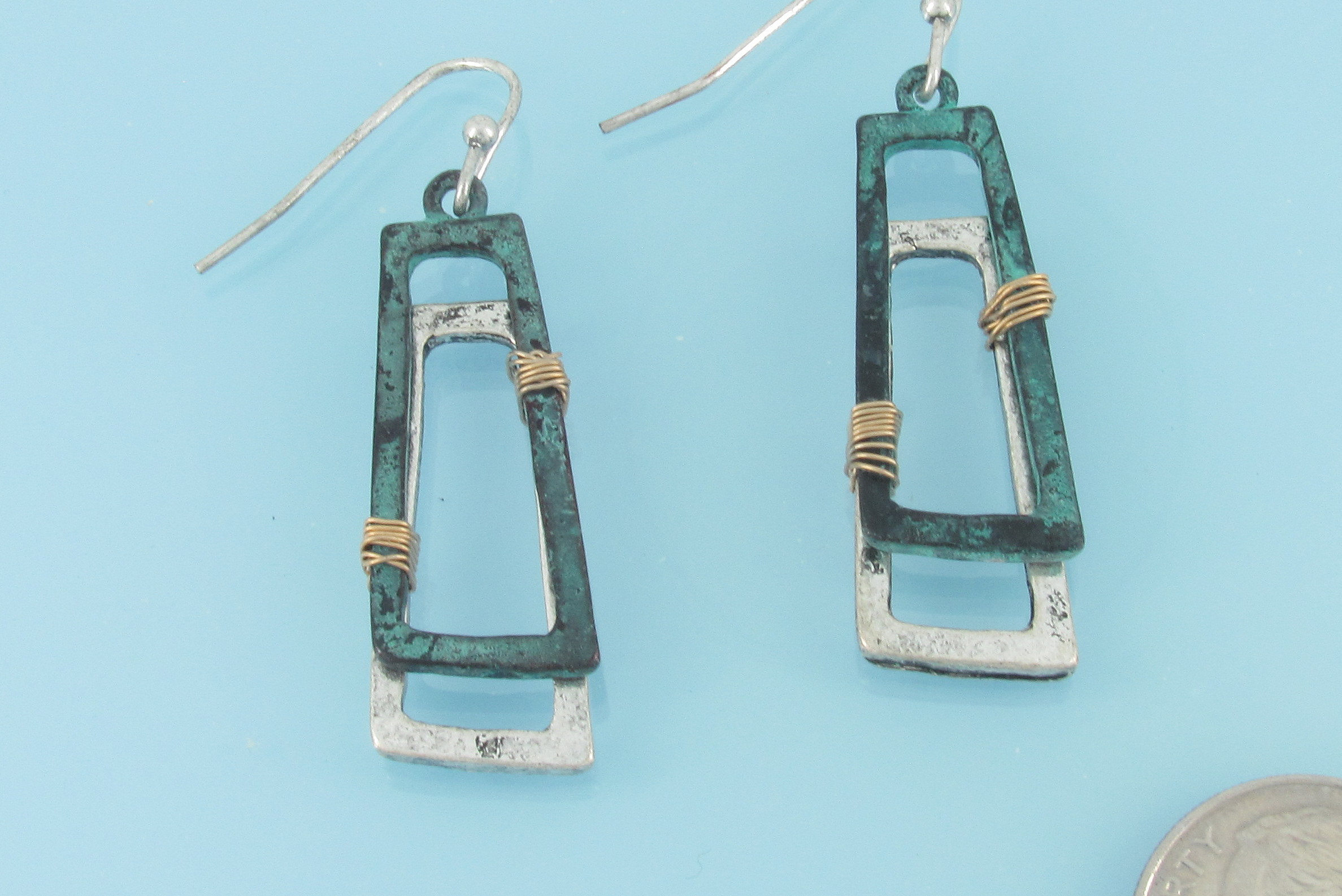 Silver and patina rectangle earrings
