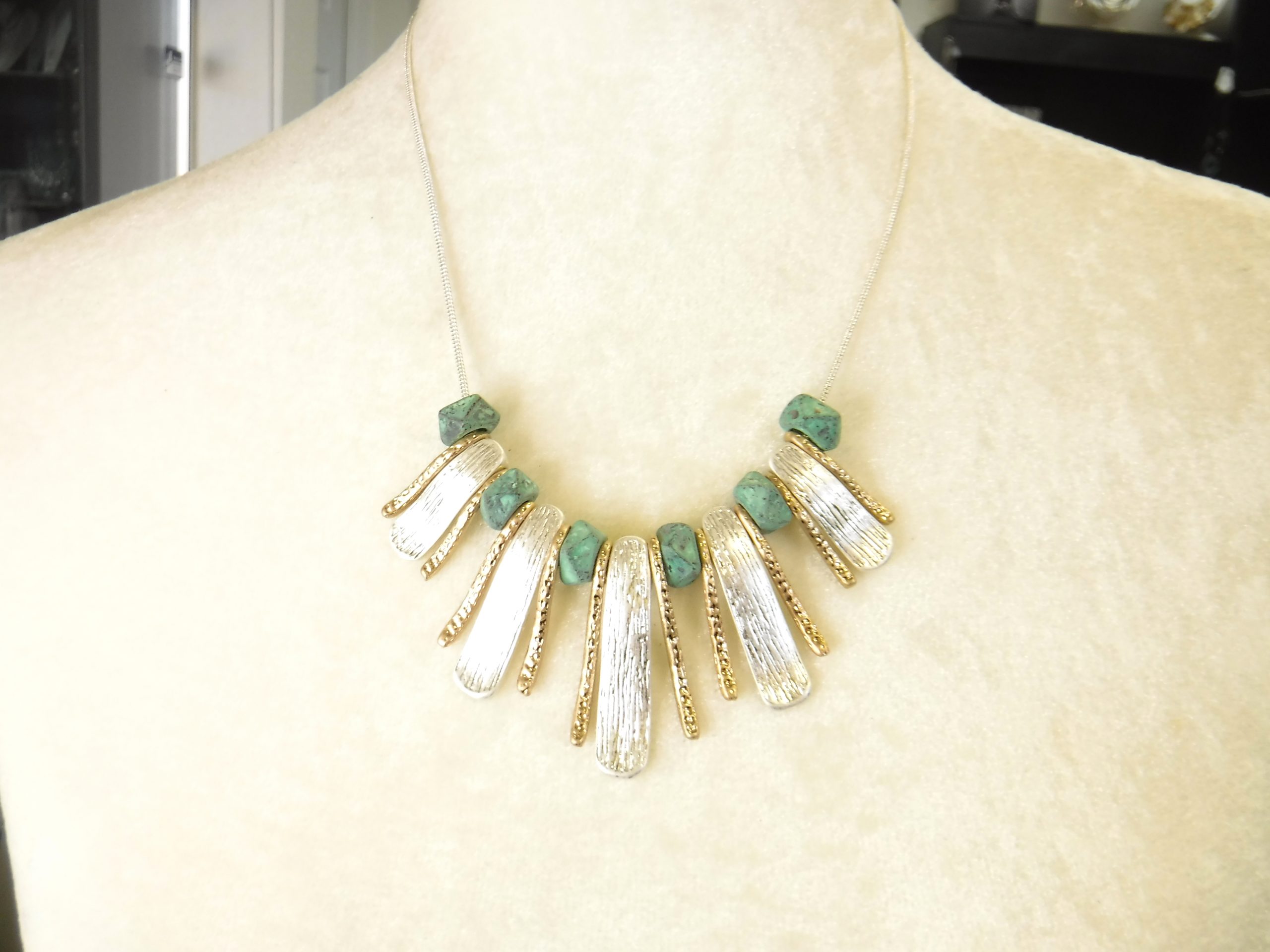 Silver, gold and turquoise necklace set