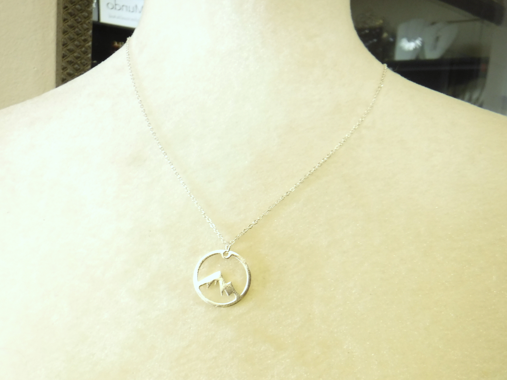 Silver round mountain necklace