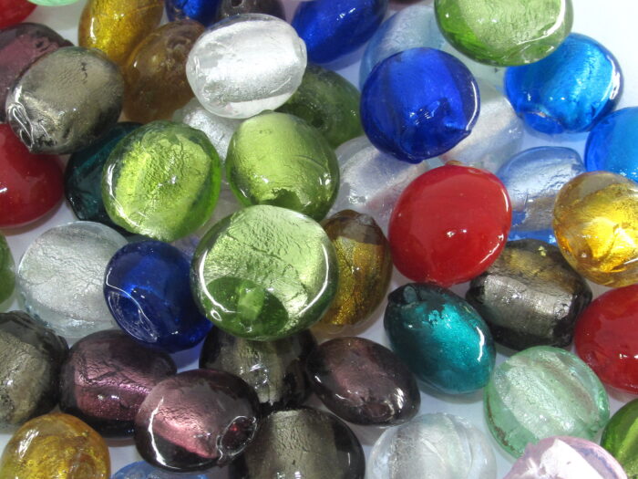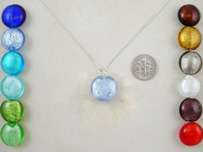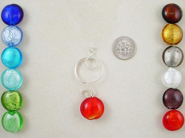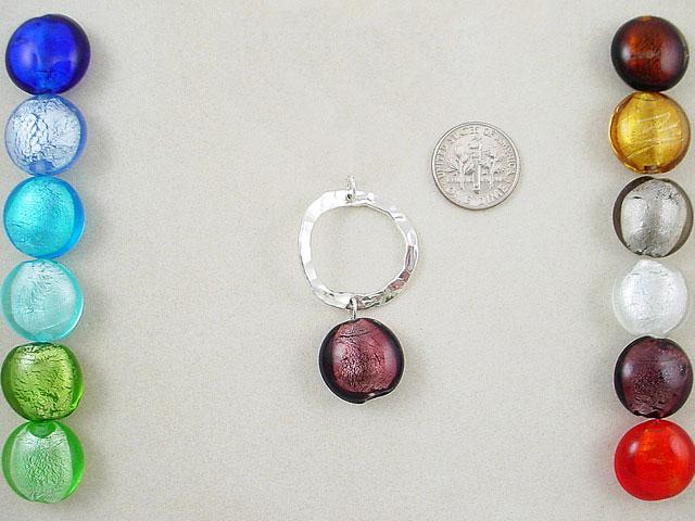 Make your own! Silver foil lamp work beads in a flat round in assorted colors 12 in a pack. Choose your color. 12x12x8mm