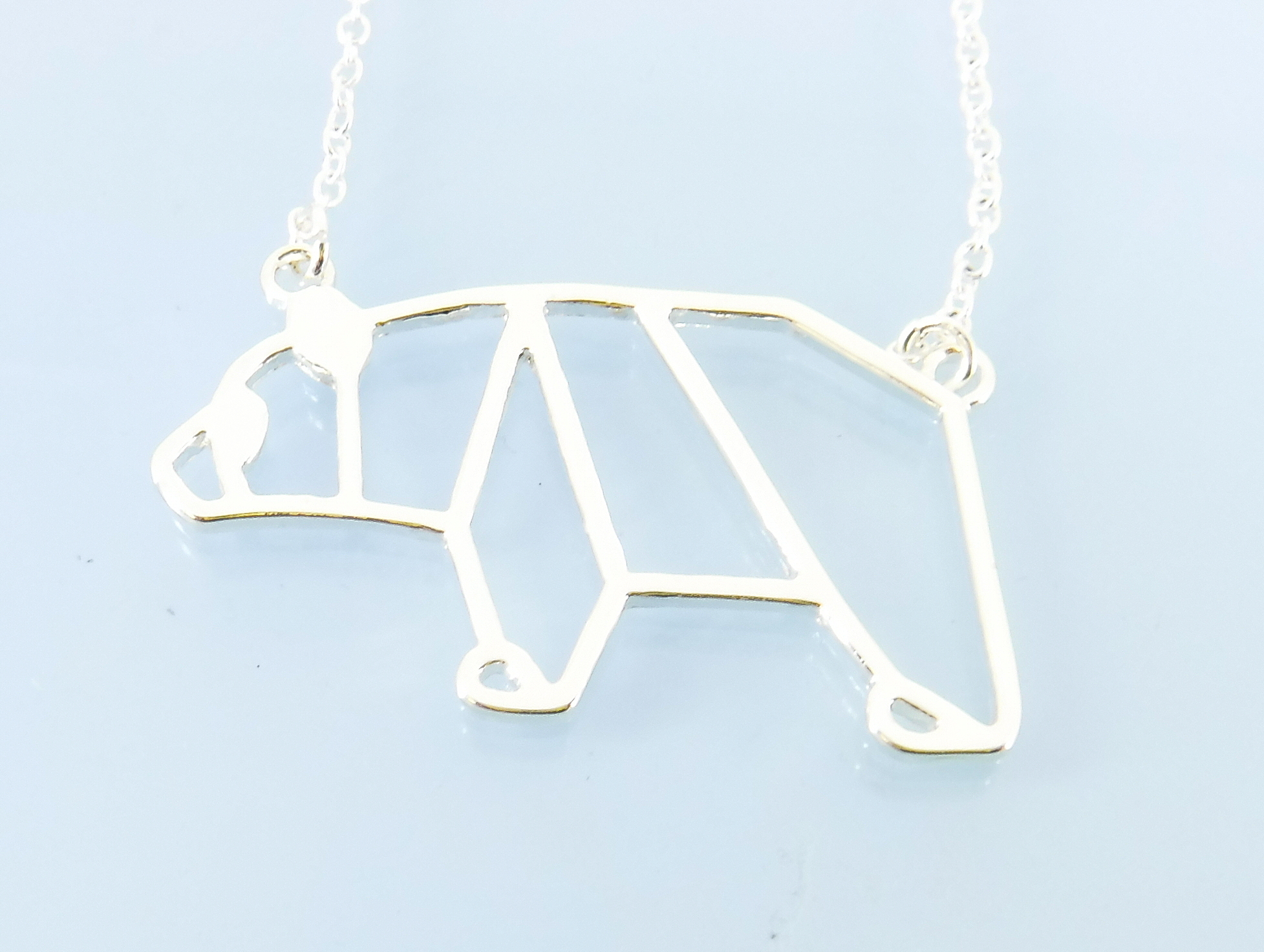 Silver origami bear necklace