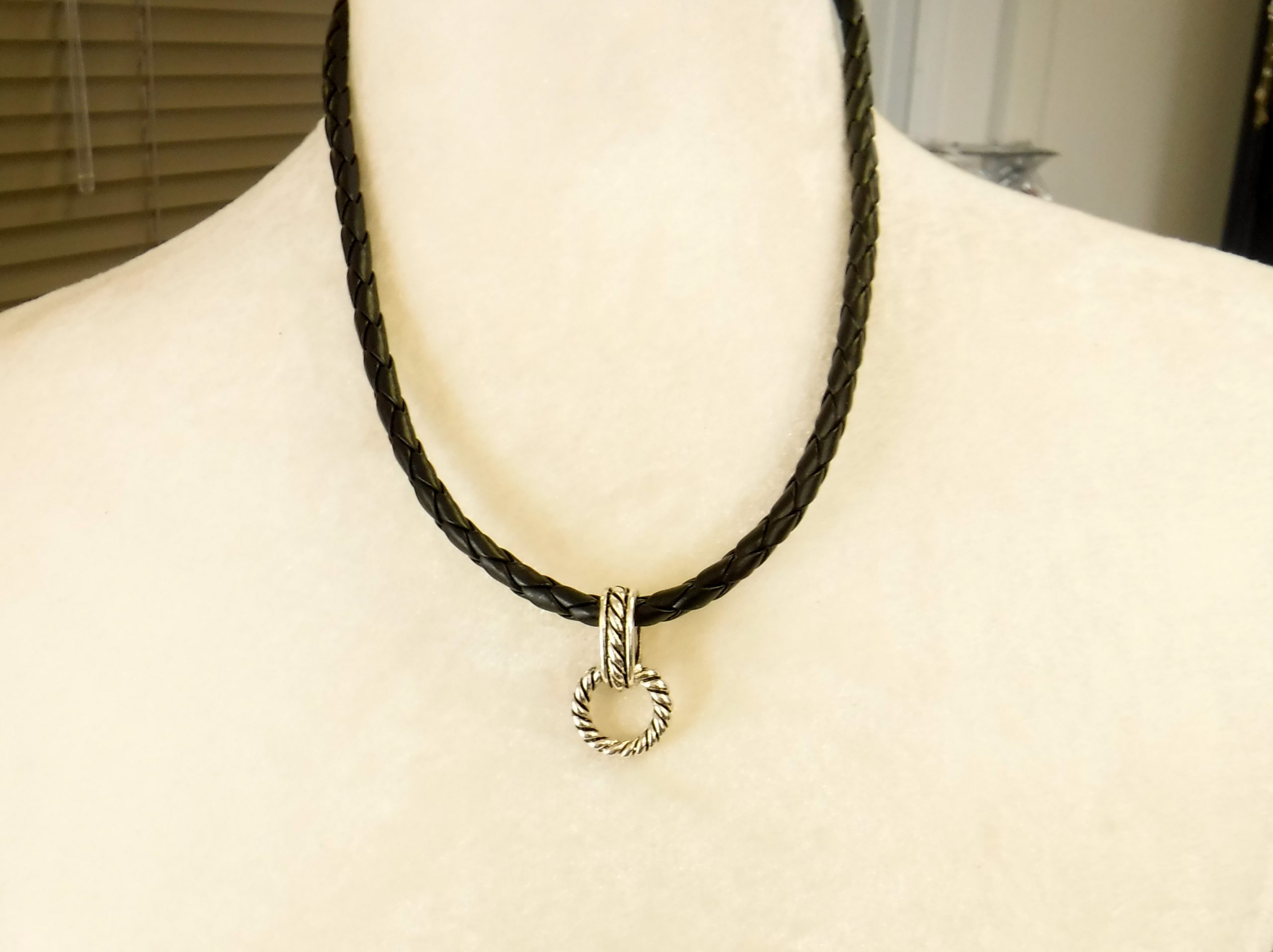 Braided black choker with hoop to hang pendants on. 12 in stock only