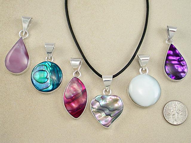 Single shell pendant on black cord in oval purple