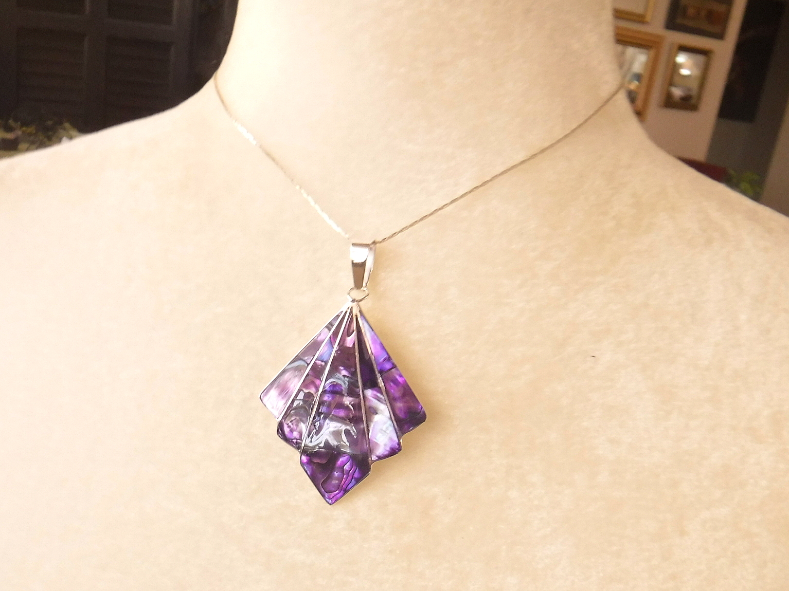 Purple fan shell necklace plus green, pink and blue