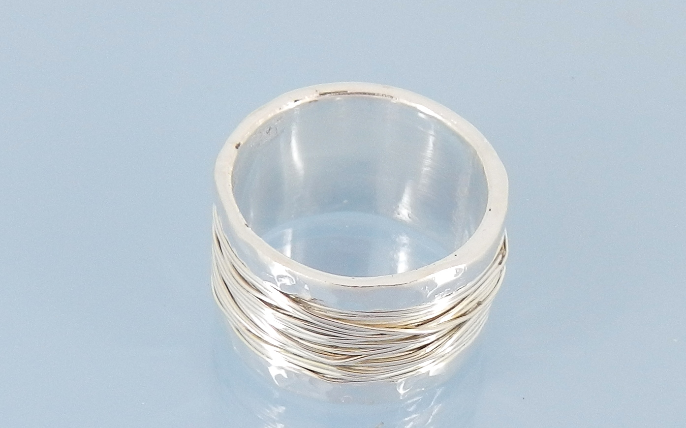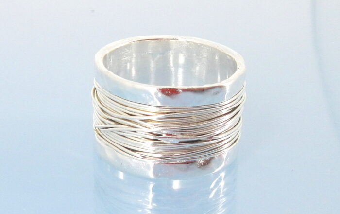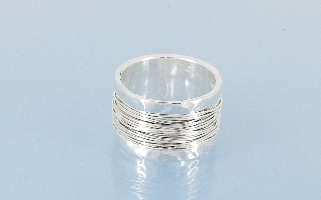 Ring silver wide hammered wrapped design