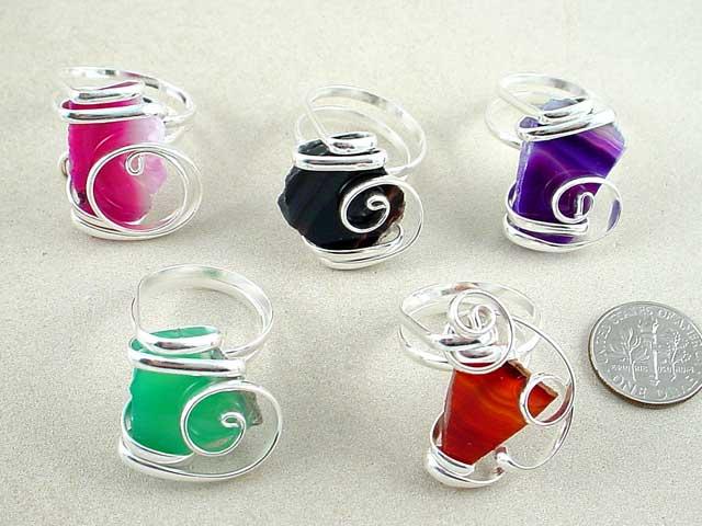 Ring wrapped wire stone purple