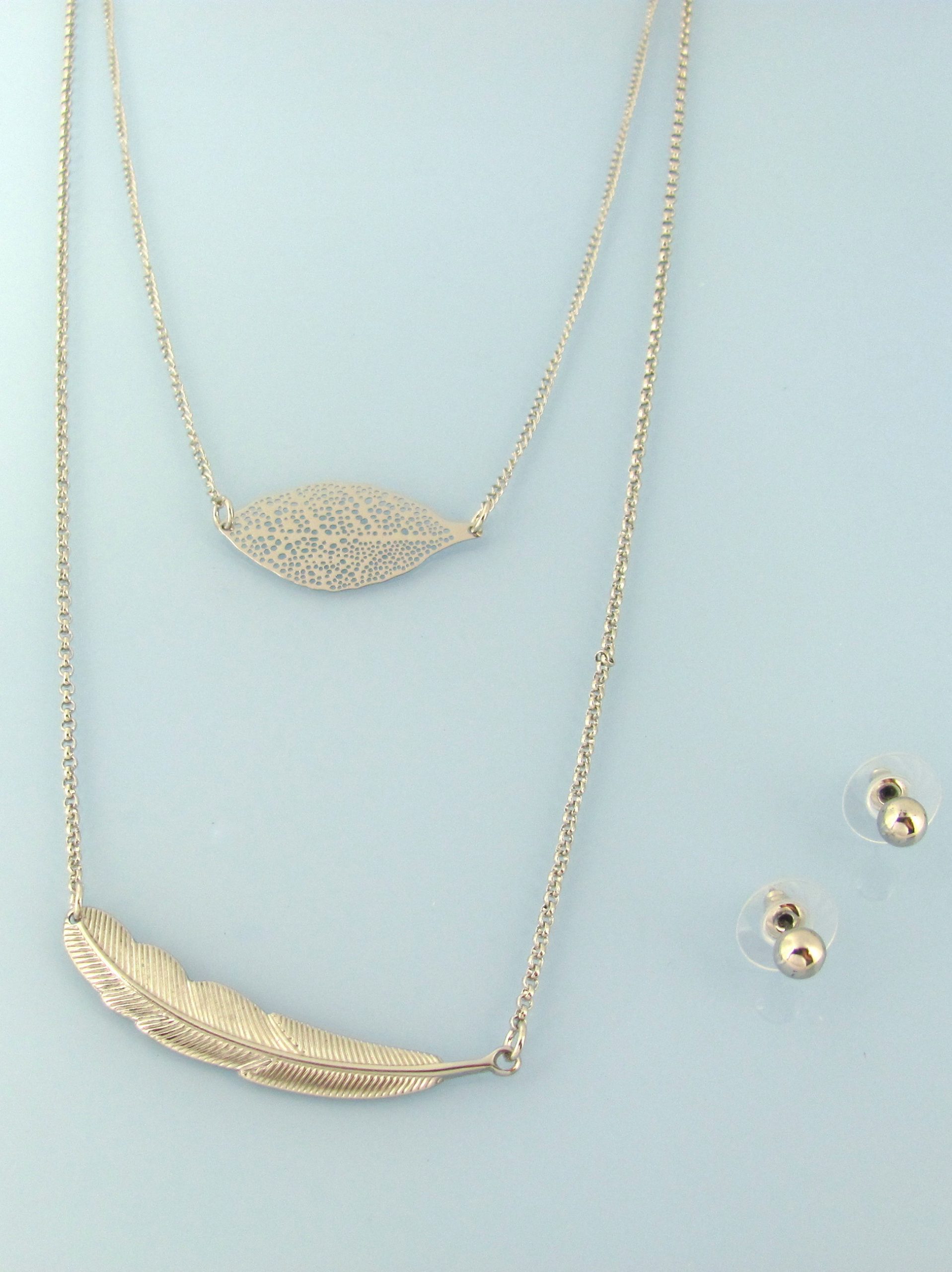 Rhodium multi chain double leaf necklace set