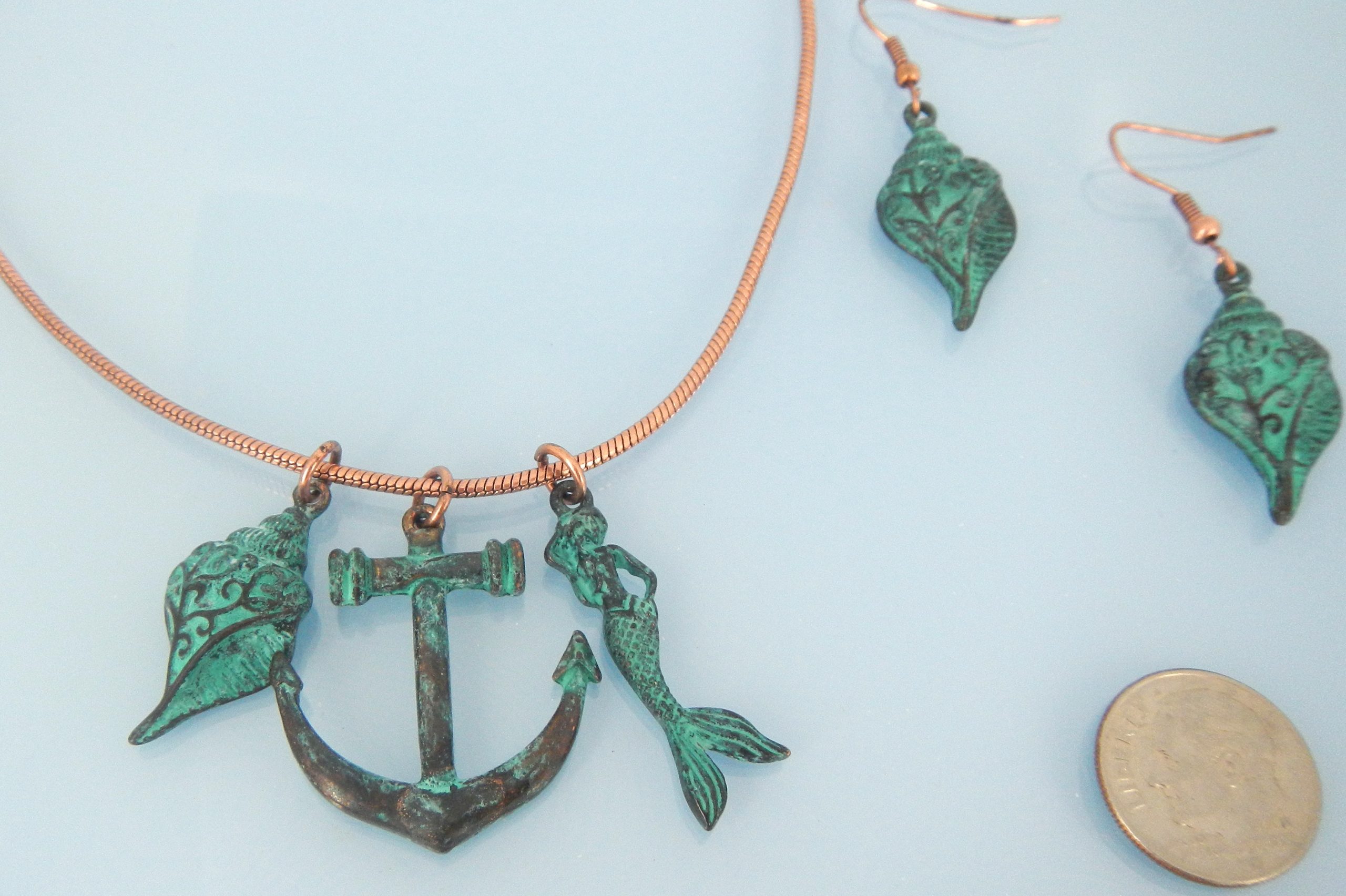 Patina mermaid necklace set