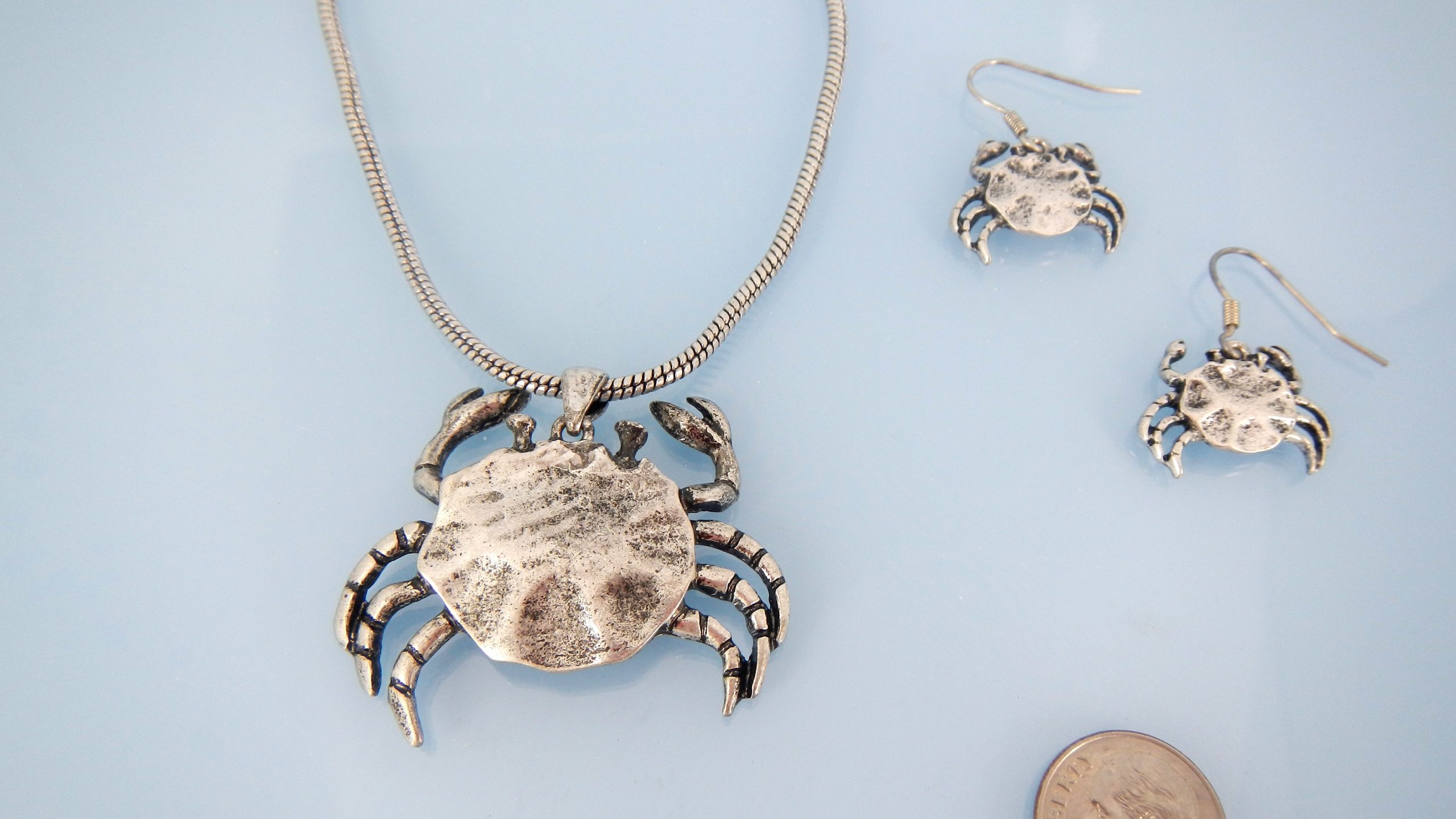 Silver crab necklace set