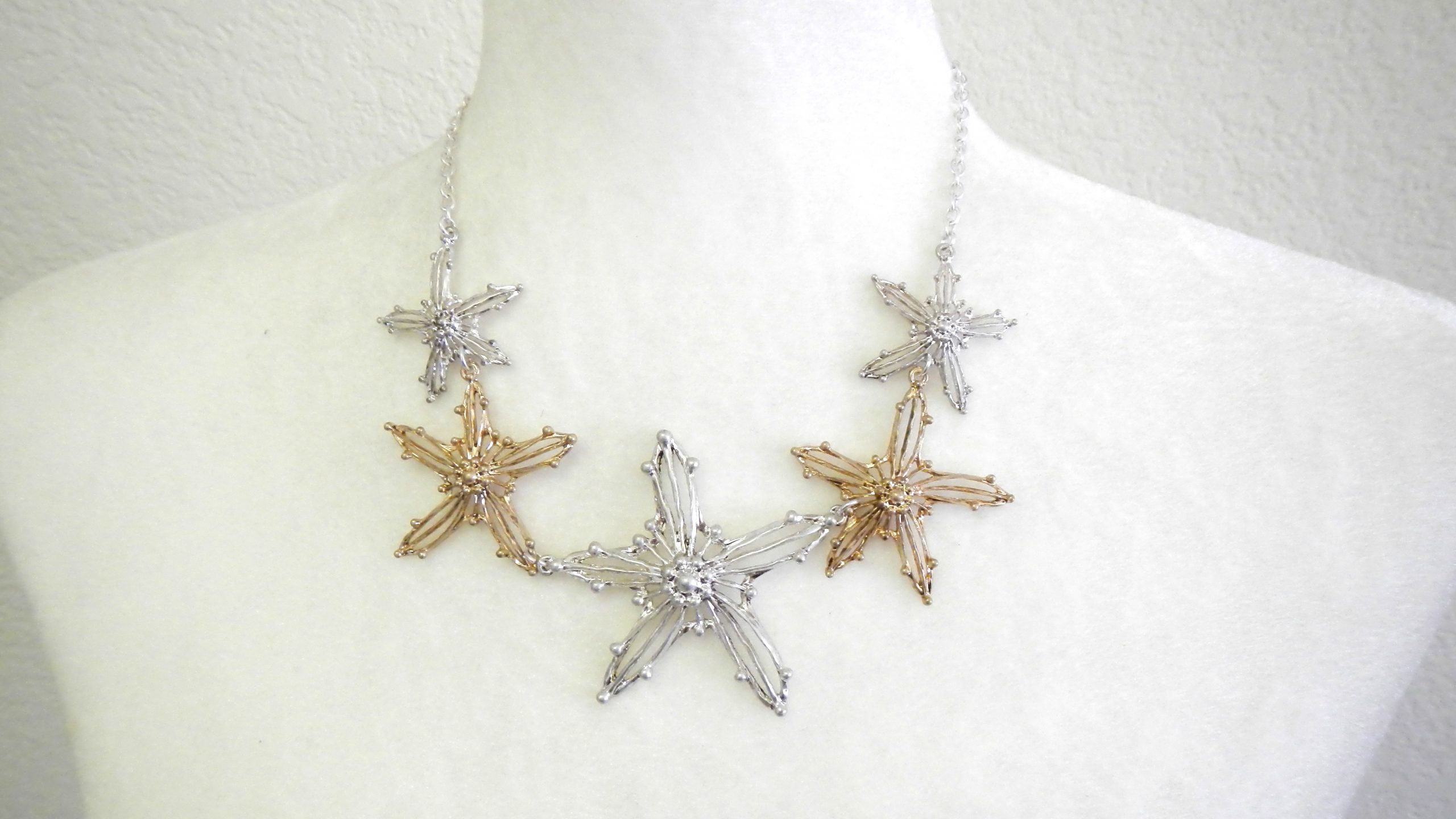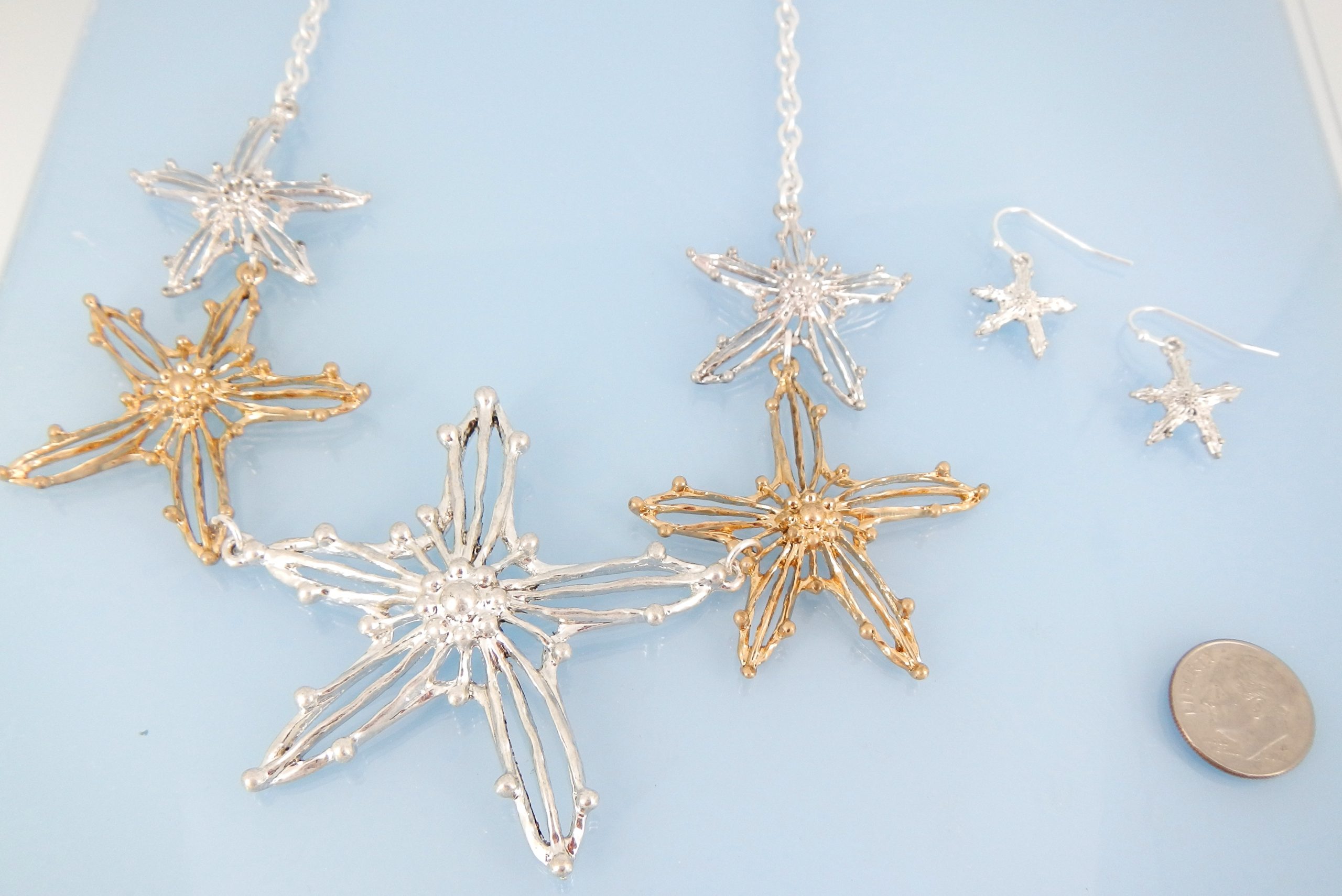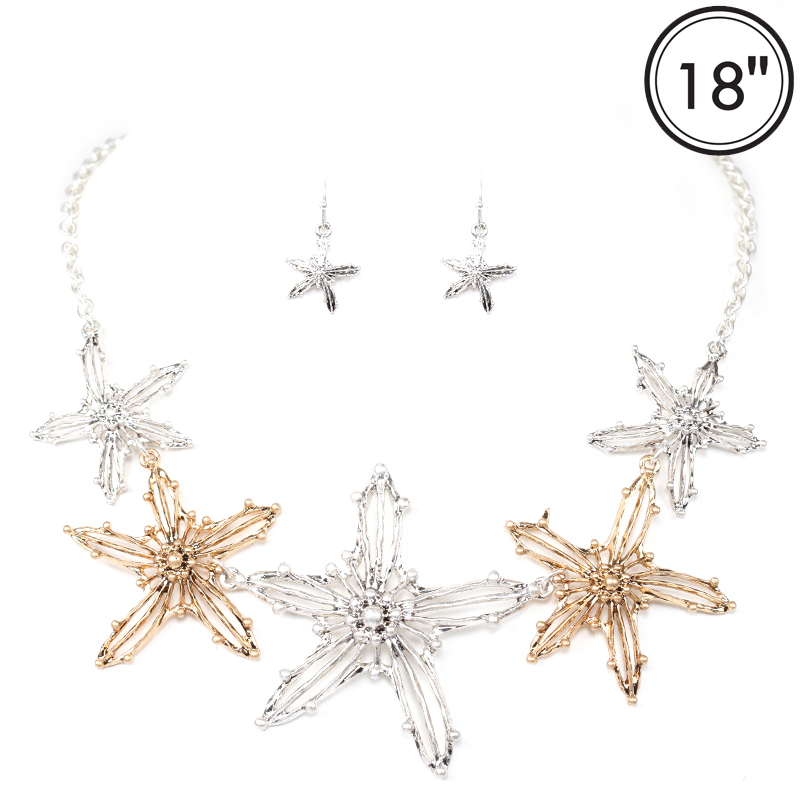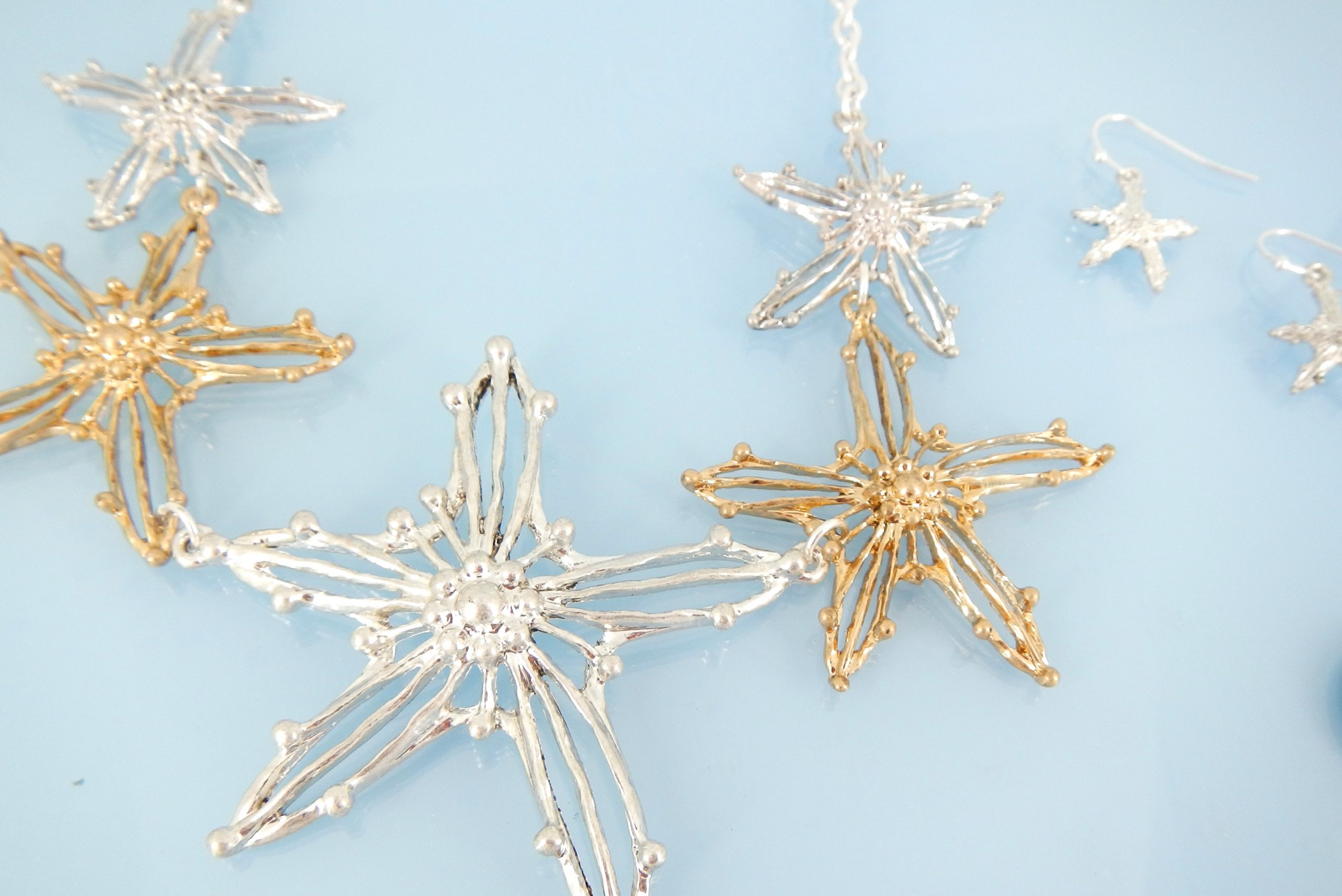 Gold and silver starfish necklace set