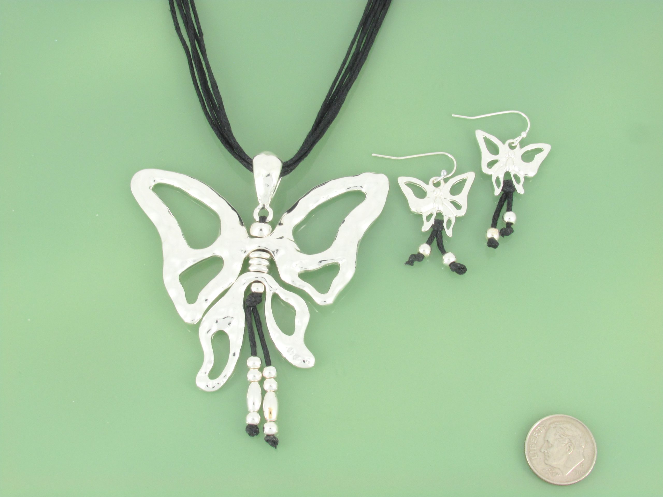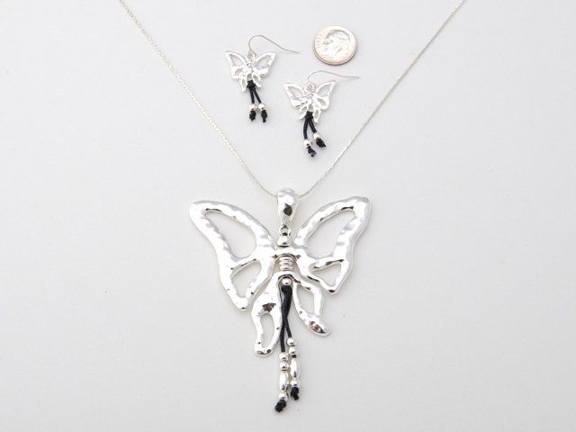 Butterfly pendant with earrings on chain