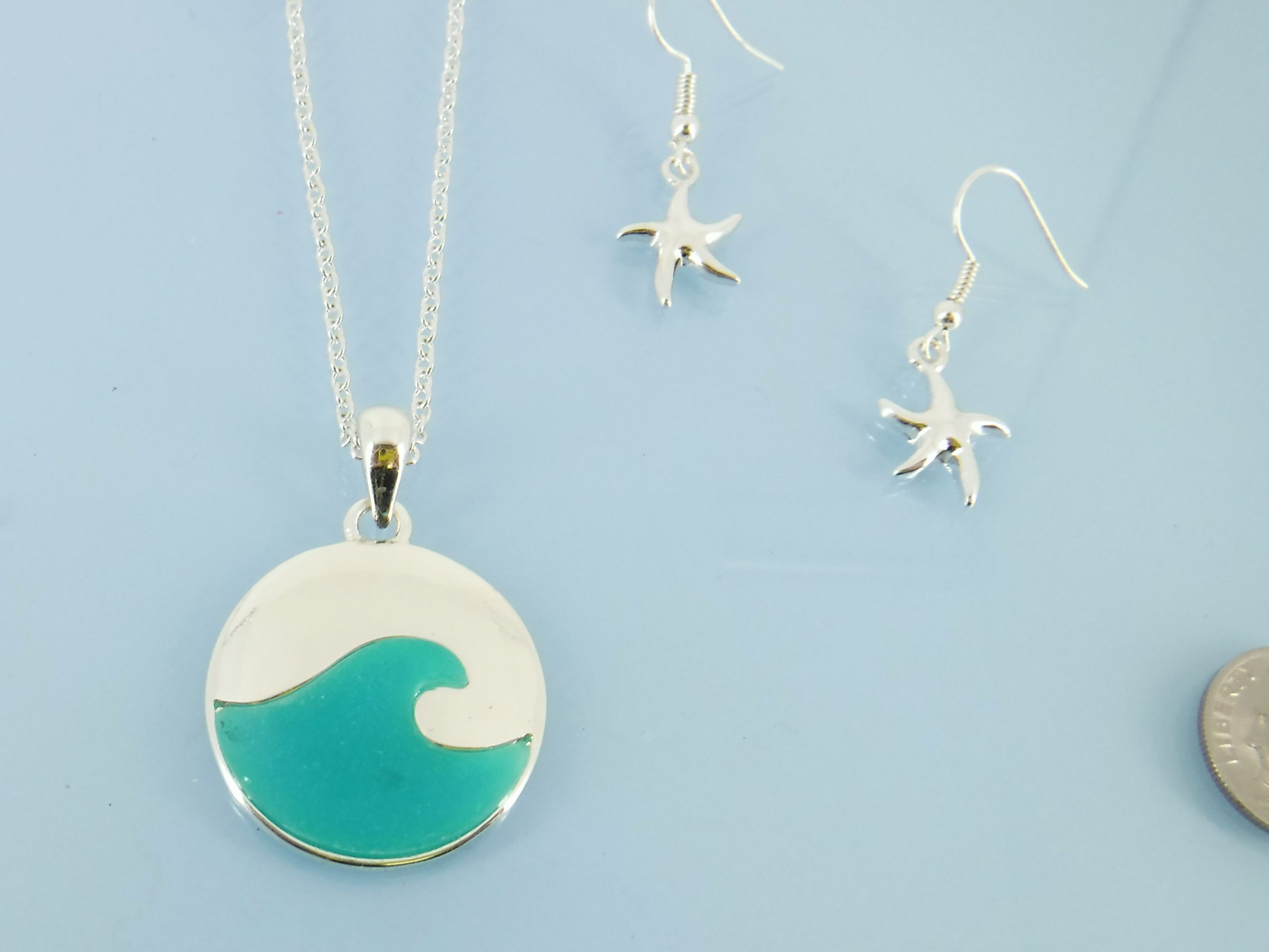 Sea glass wave pendant with starfish set