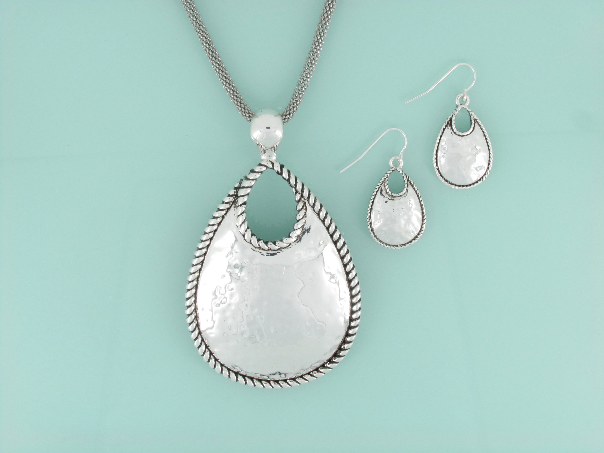 Large hammered teardrop pendent with earrings