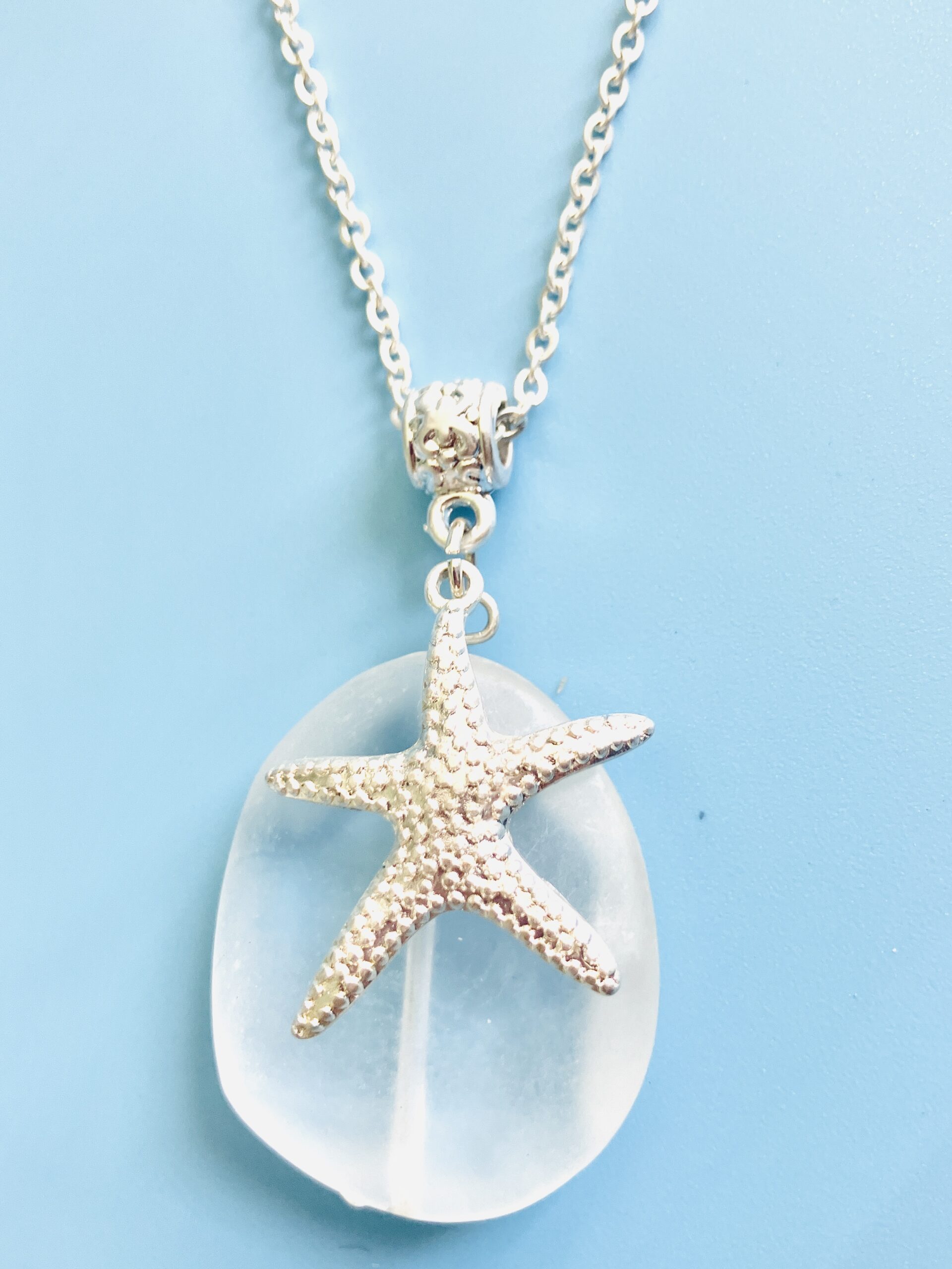 Starfish necklace on white sea glass set