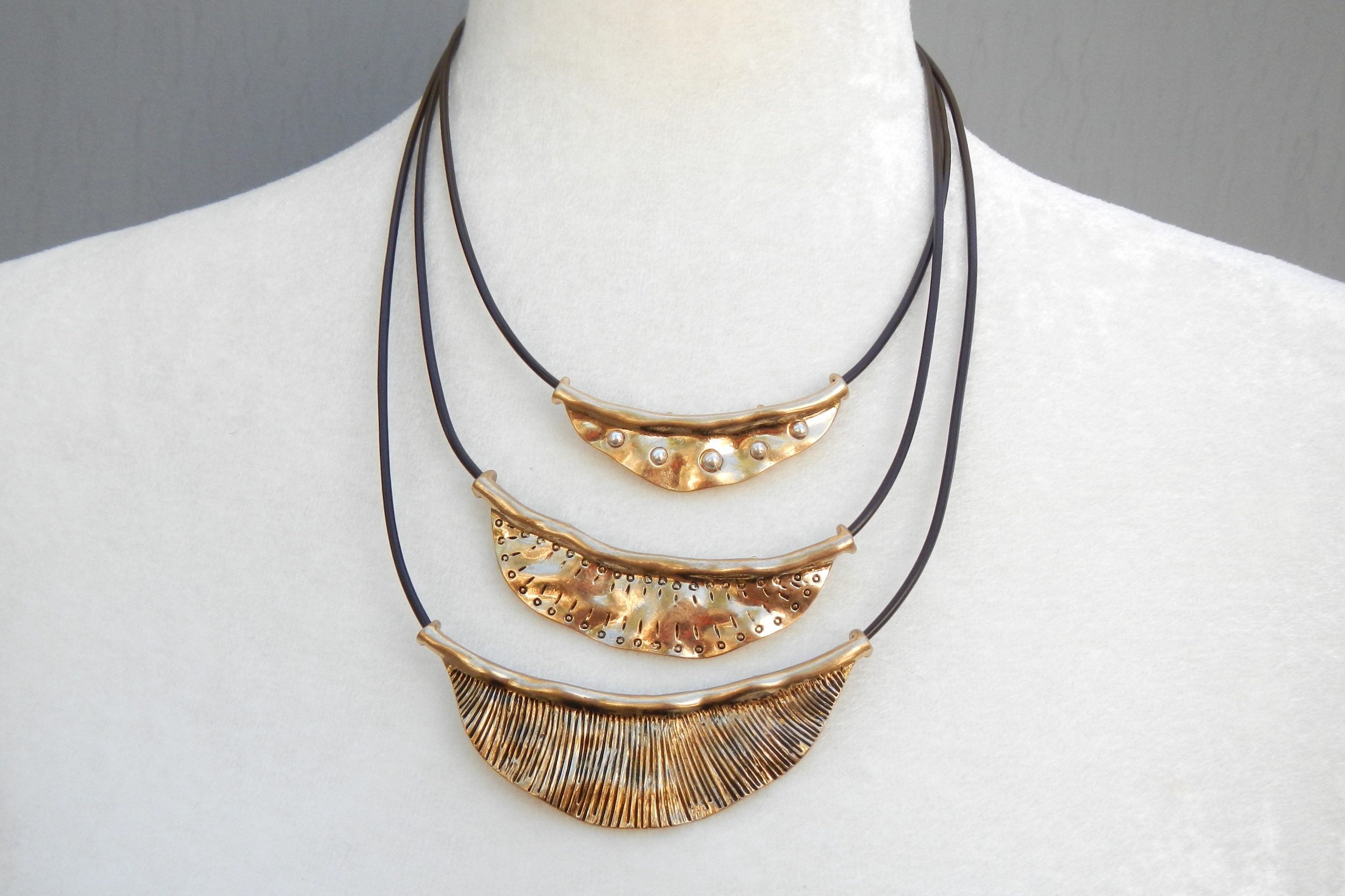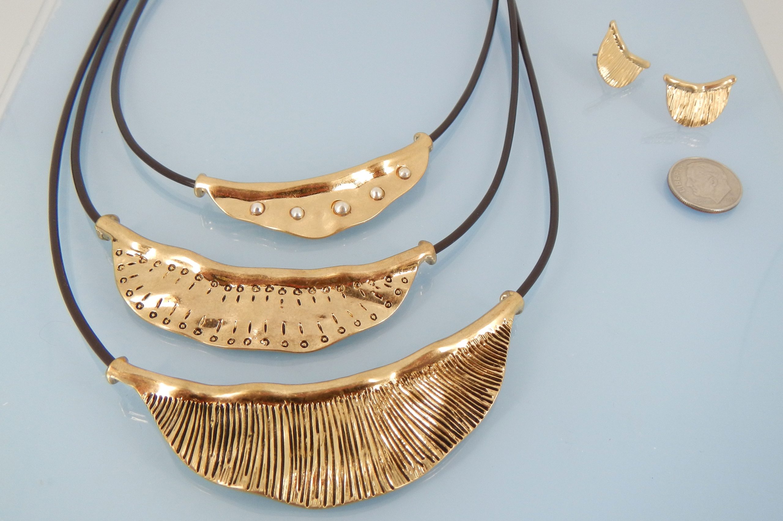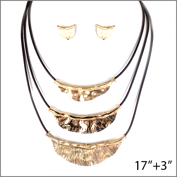 Gold tone metal with leather cord necklace set 17″ long with 3″ extender